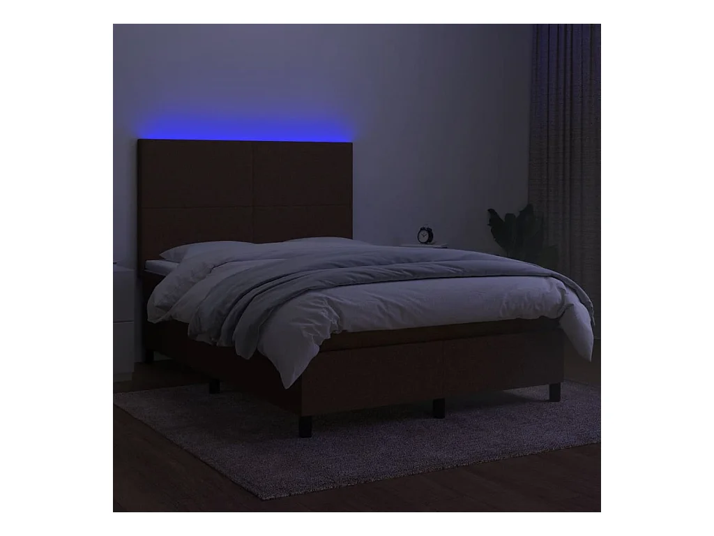 Sommier à lattes de lit matelas et LED Marron foncé 140x200