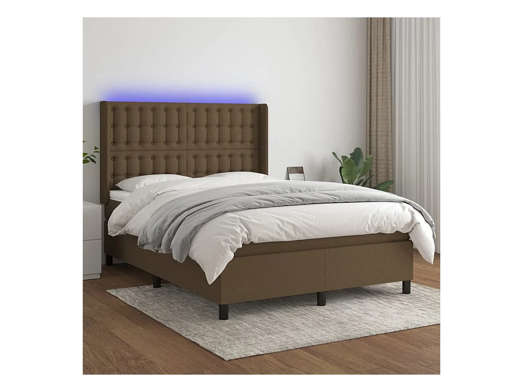 Sommier à lattes de lit matelas et LED Marron foncé 140x200
