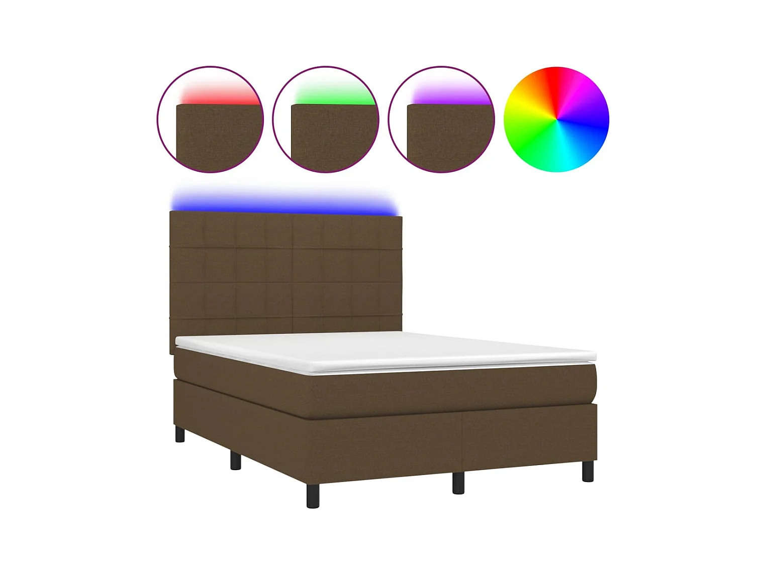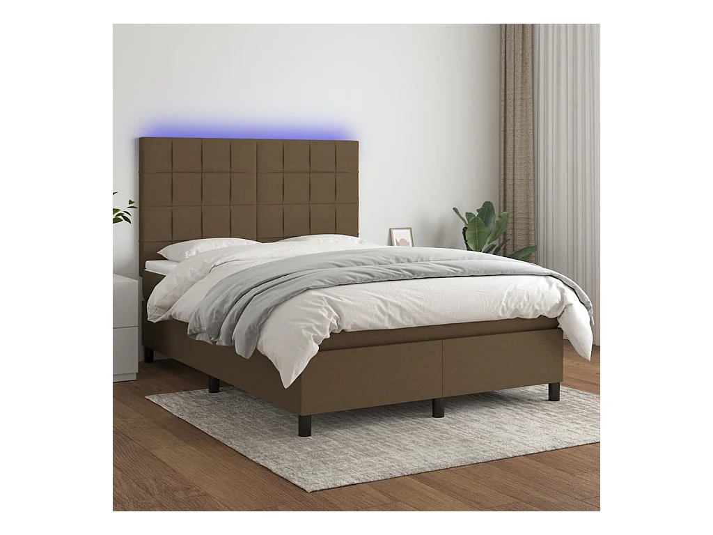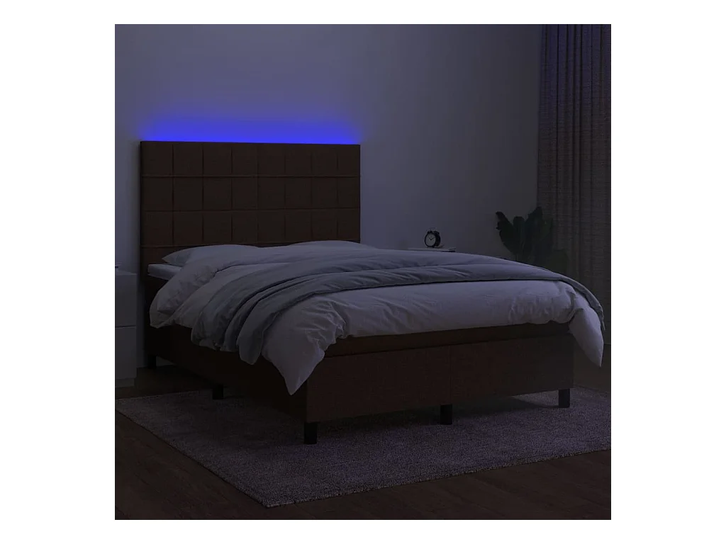 Sommier à lattes de lit matelas et LED Marron foncé 140x200
