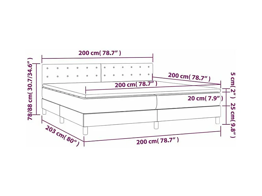 Sommier à lattes de lit matelas et LED Marron foncé 200x200