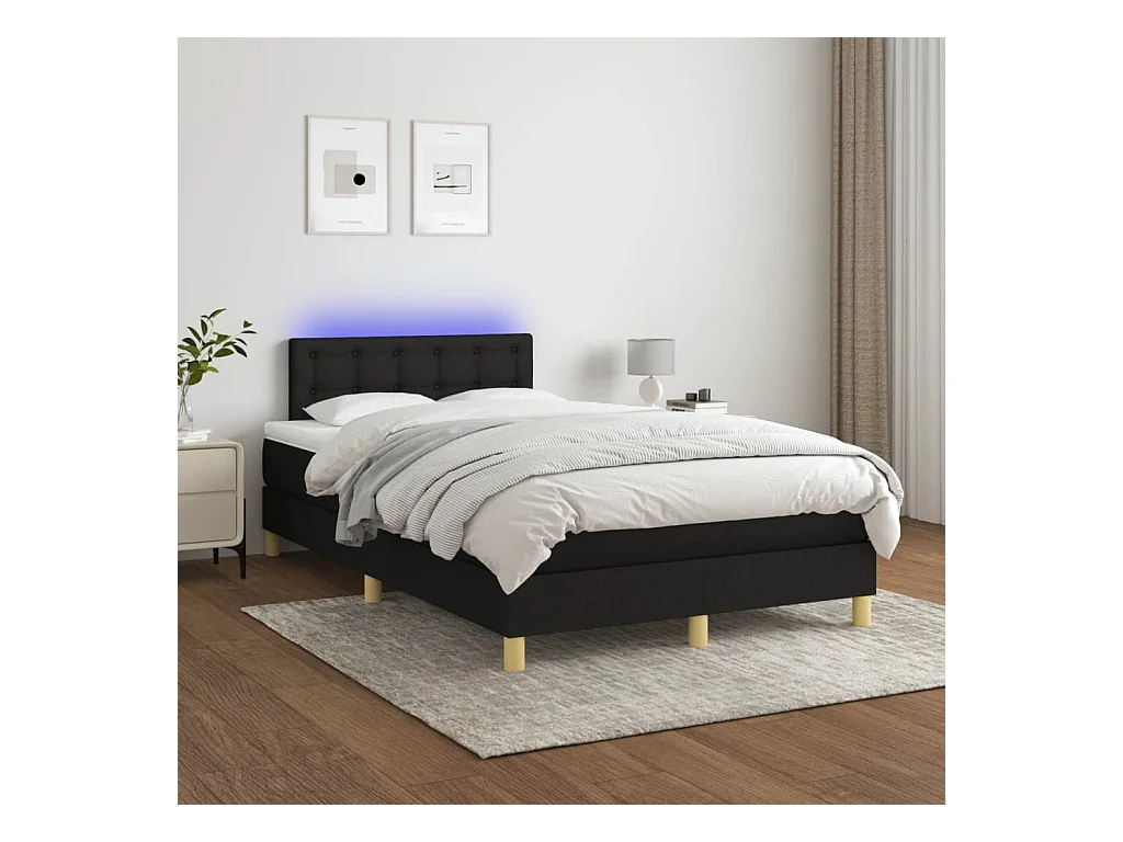 Sommier à lattes de lit matelas et LED noir 120x190 tissu