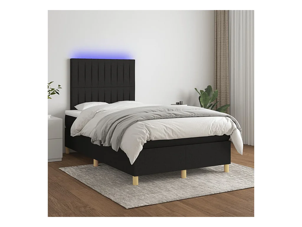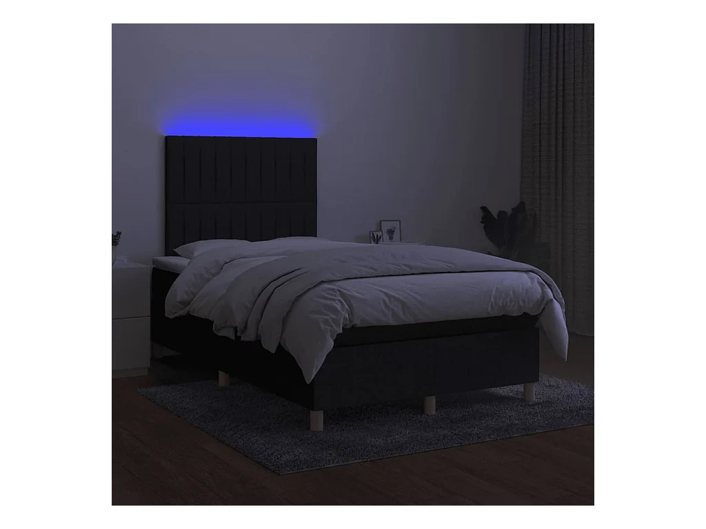 Sommier à lattes de lit matelas et LED noir 120x190 tissu