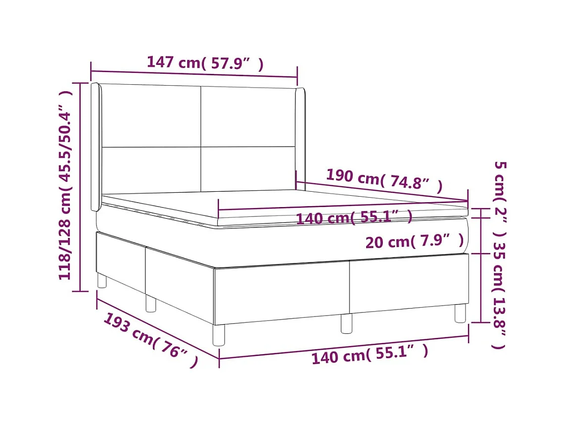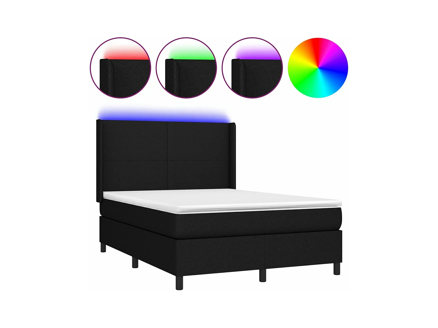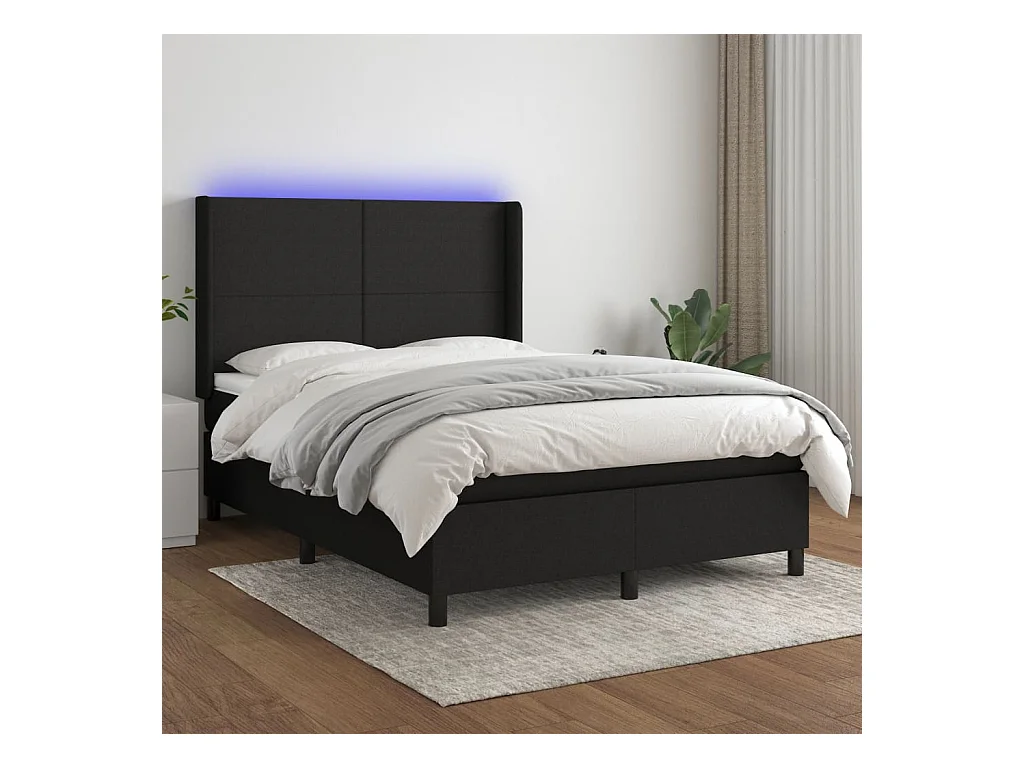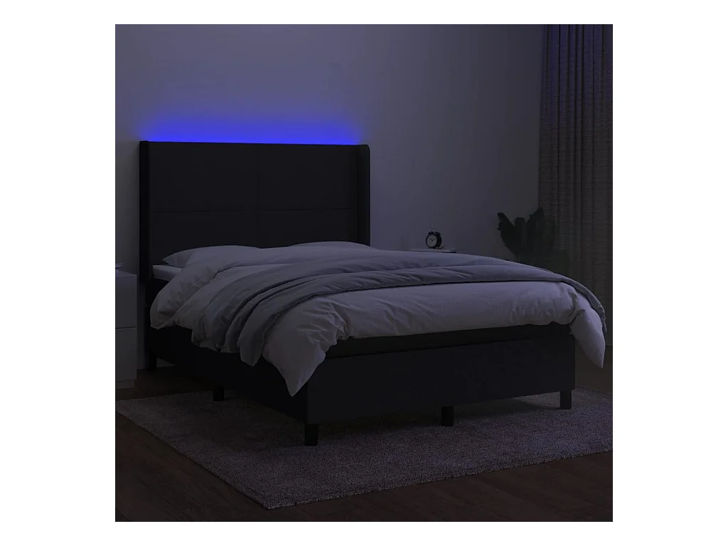 Sommier à lattes de lit matelas et LED Noir 140x190 Tissu