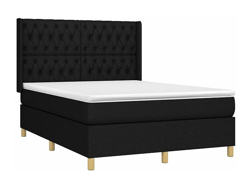 Sommier à lattes de lit matelas et LED Noir 140x200 Tissu