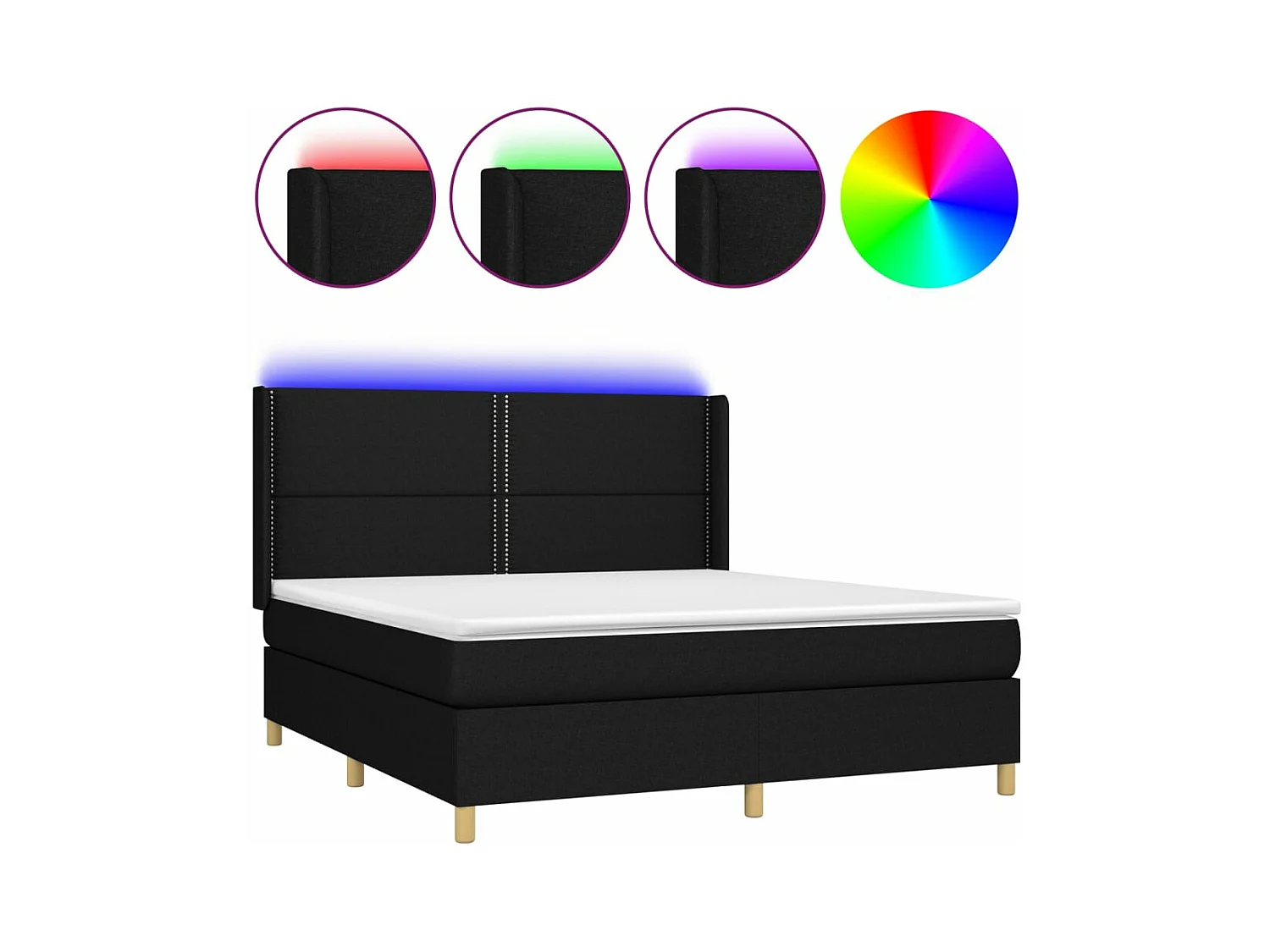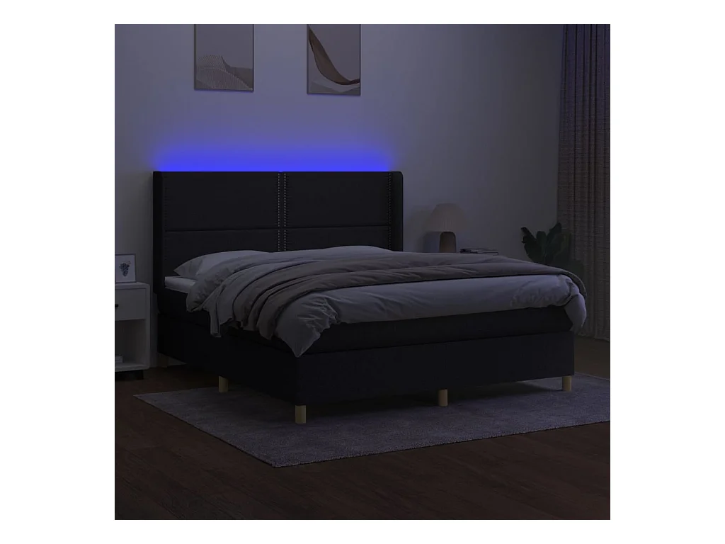 Sommier à lattes de lit matelas et LED Noir 160x200 cm Tissu
