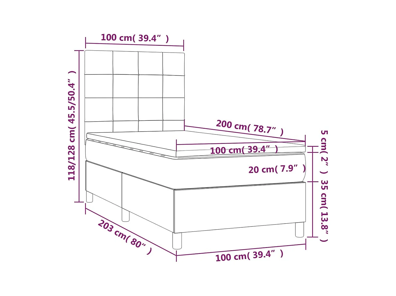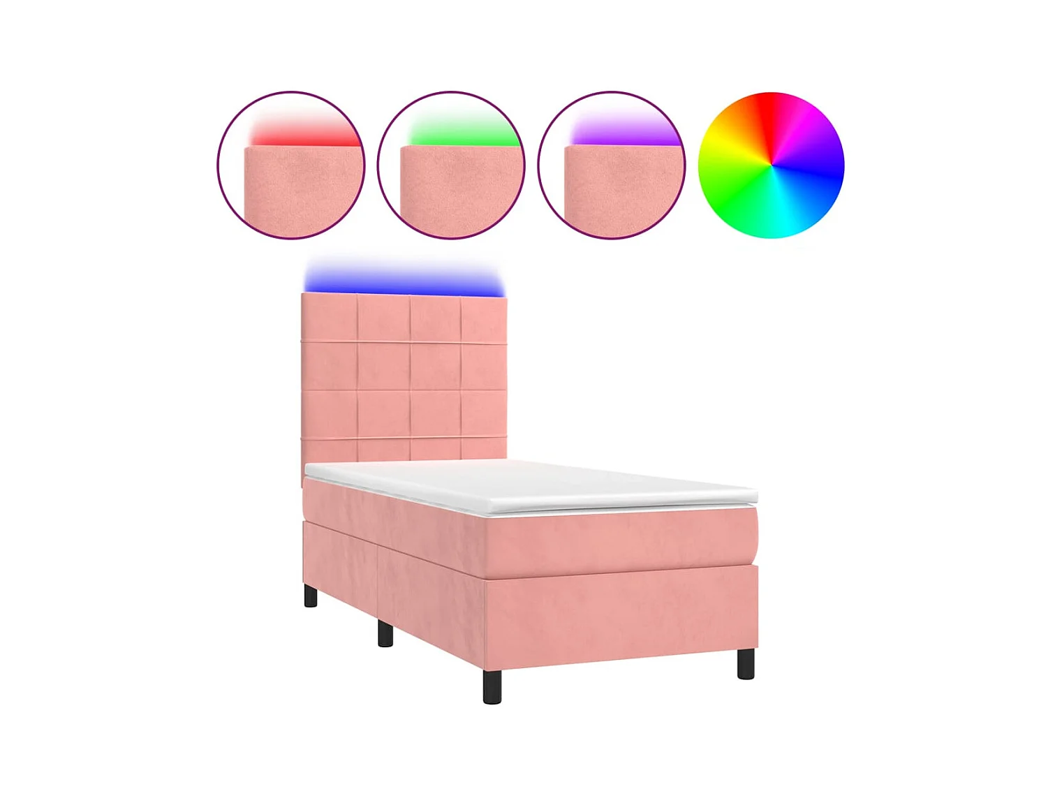 Sommier à lattes de lit matelas et LED Rose 100x200 Velours