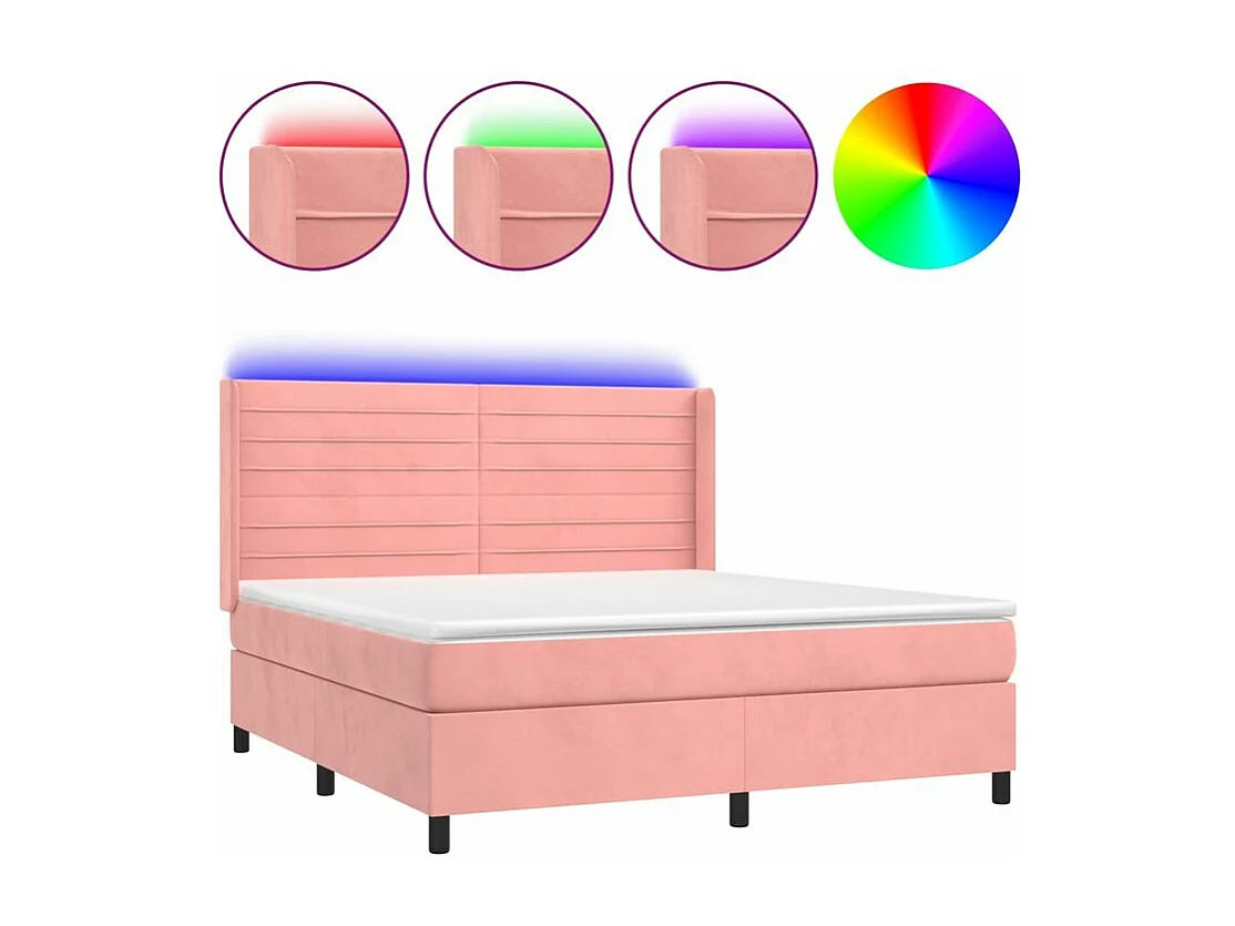 Sommier à lattes de lit matelas et LED Rose 160x200 Velours
