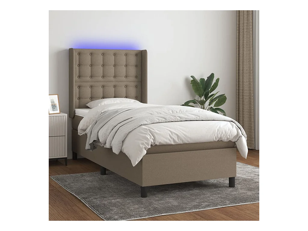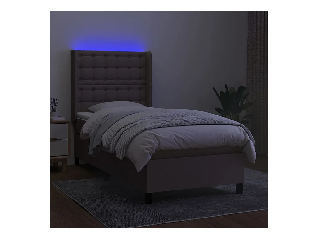 Sommier à lattes de lit matelas et LED Taupe 90x200 Tissu