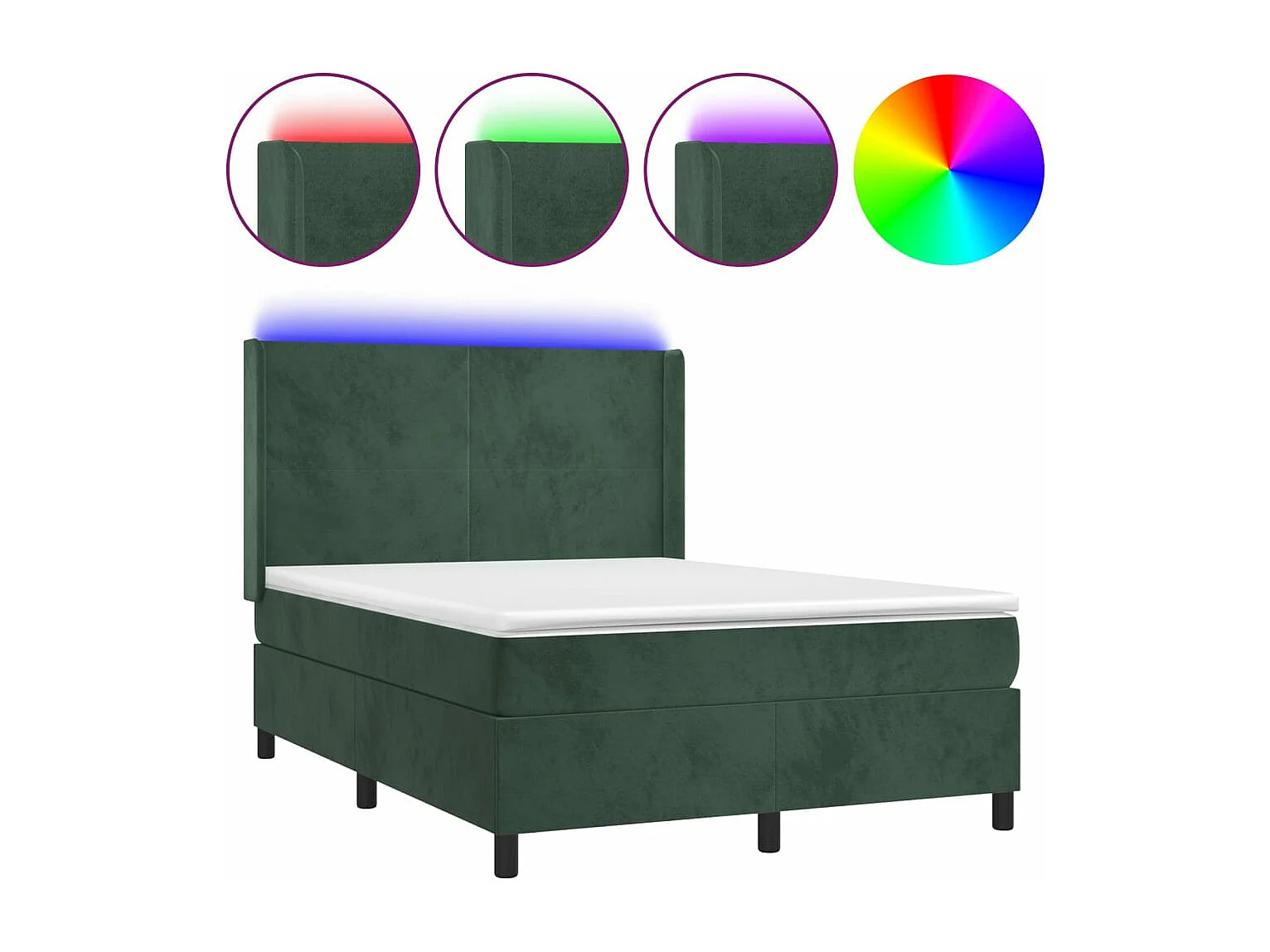 Sommier à lattes de lit matelas et LED Vert foncé 140x200 cm