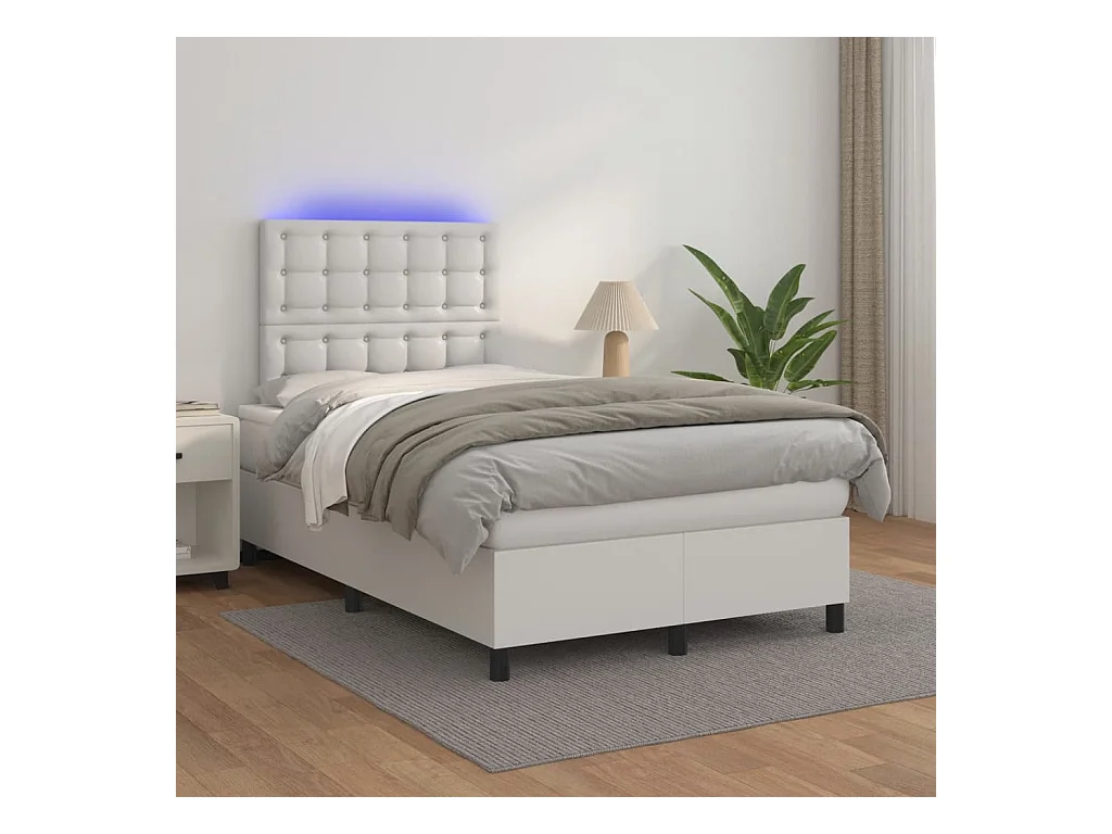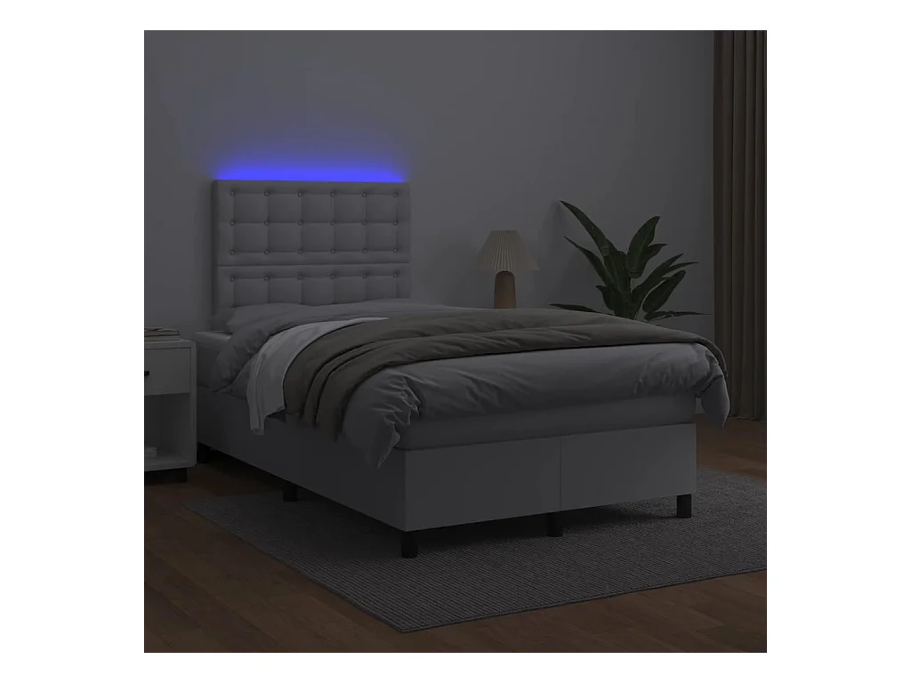 Sommier à lattes de lit matelas LED blanc 120x190 similicuir