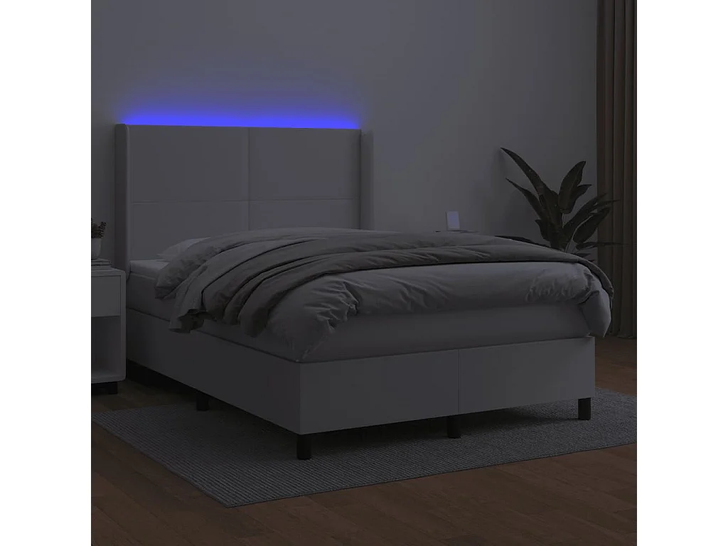 Sommier à lattes de lit matelas LED Blanc 140x190 Similicuir