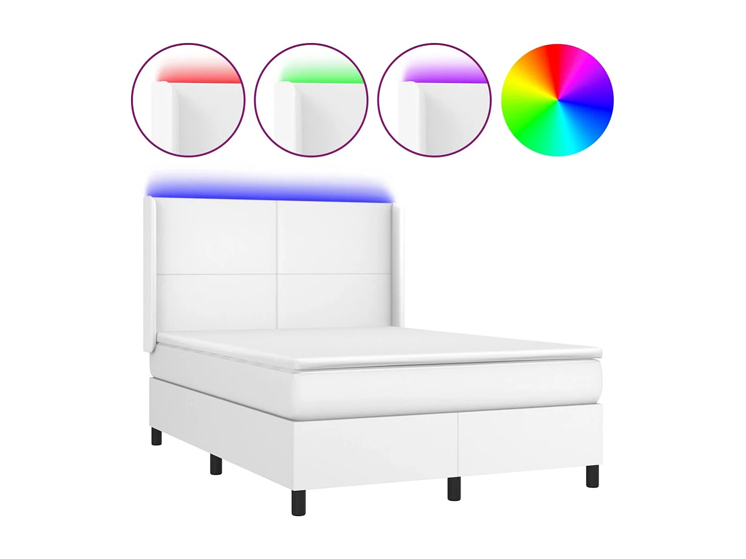 Sommier à lattes de lit matelas LED Blanc 140x200 Similicuir