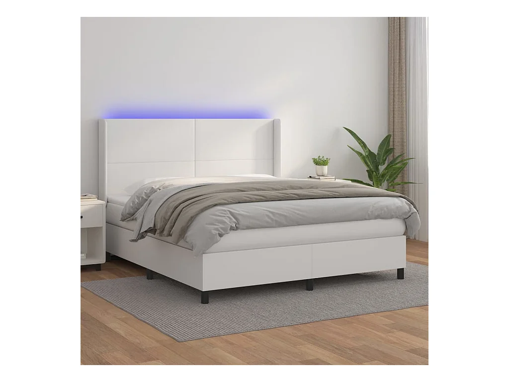 Sommier à lattes de lit matelas LED Blanc 180x200 Similicuir