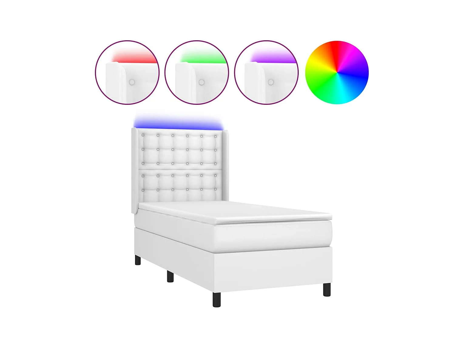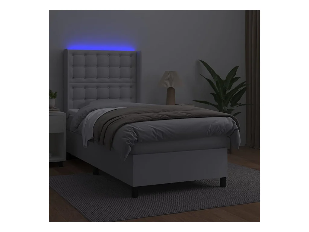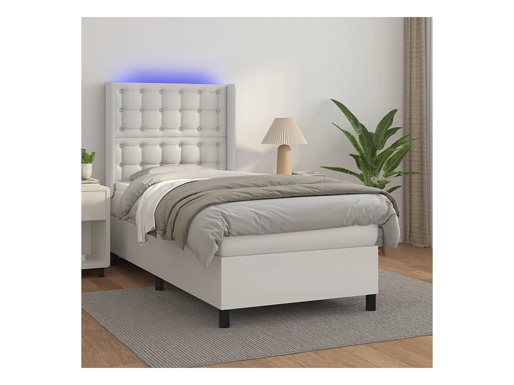 Sommier à lattes de lit matelas LED Blanc 80x200 Similicuir