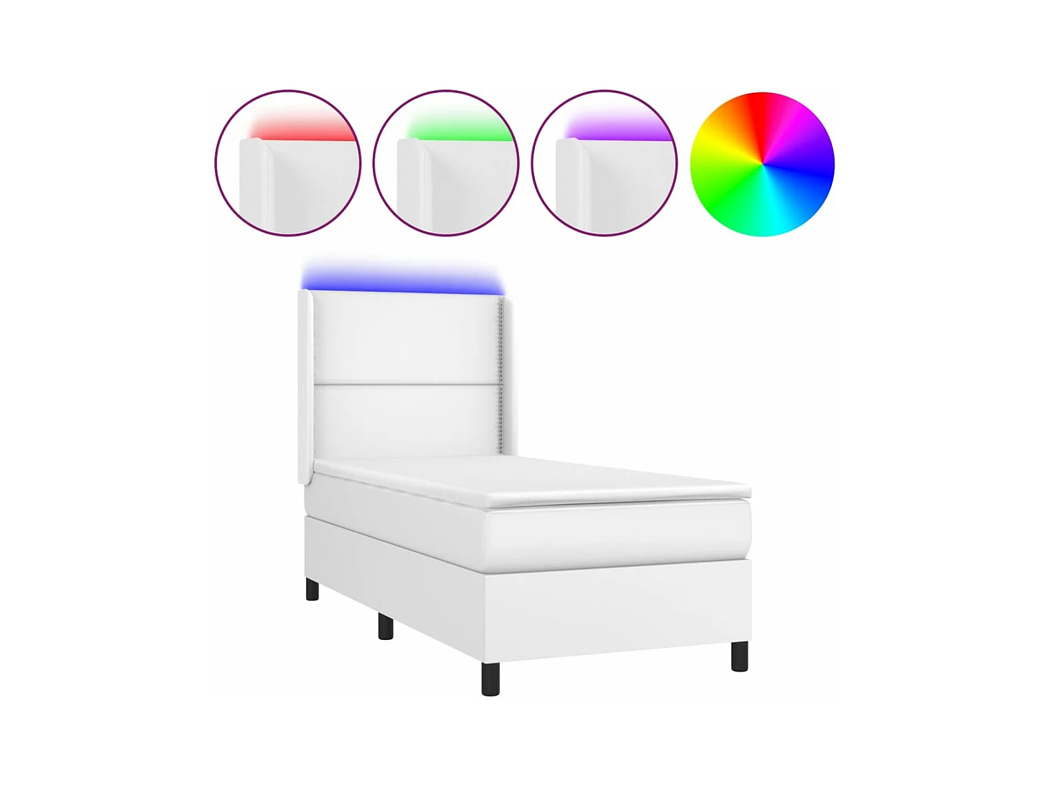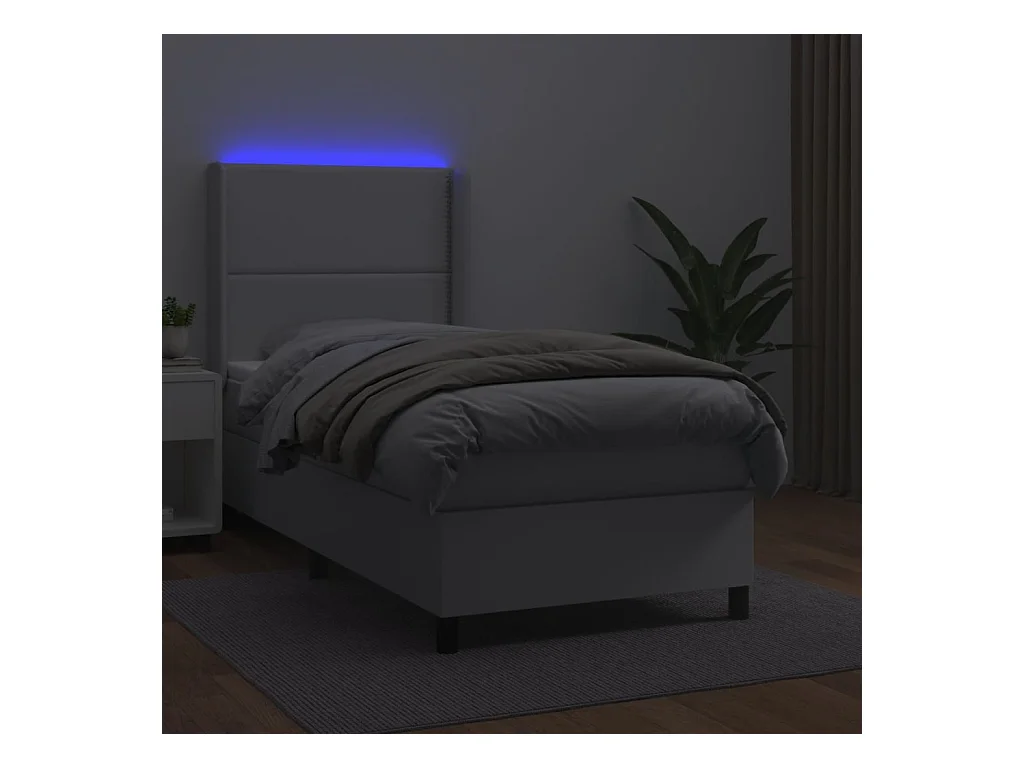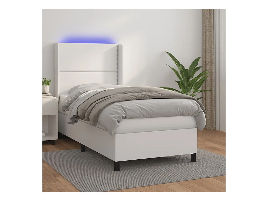 Sommier à lattes de lit matelas LED Blanc 90x190 Similicuir