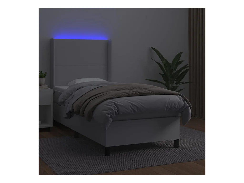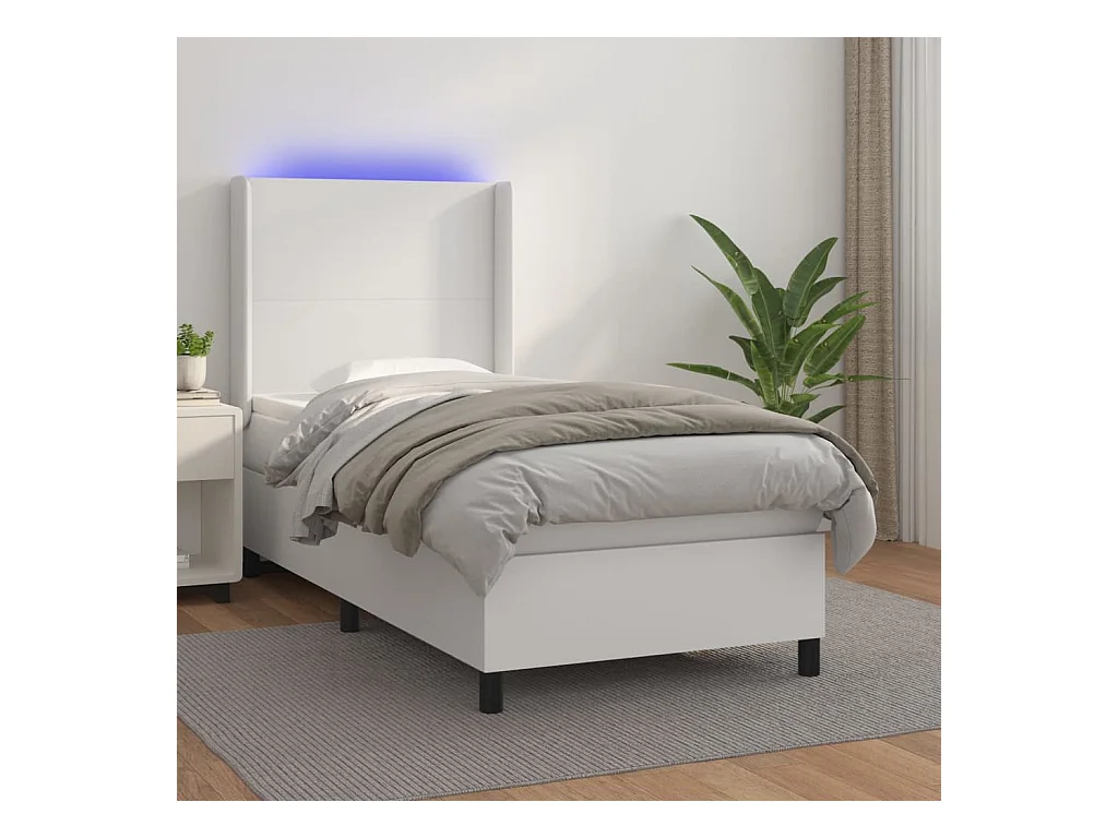 Sommier à lattes de lit matelas LED Blanc 90x200 Similicuir