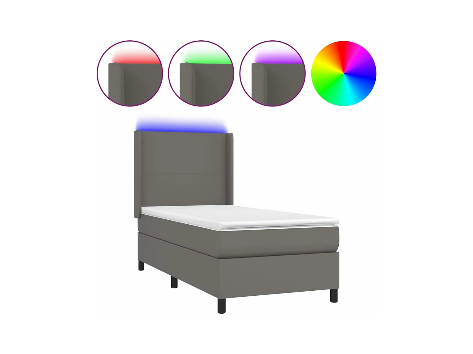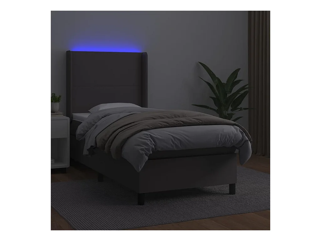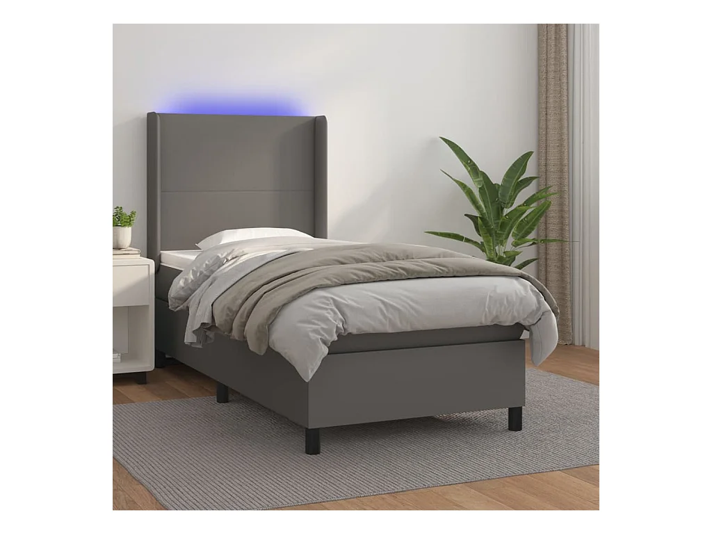 Sommier à lattes de lit matelas LED Gris 100x200 Similicuir