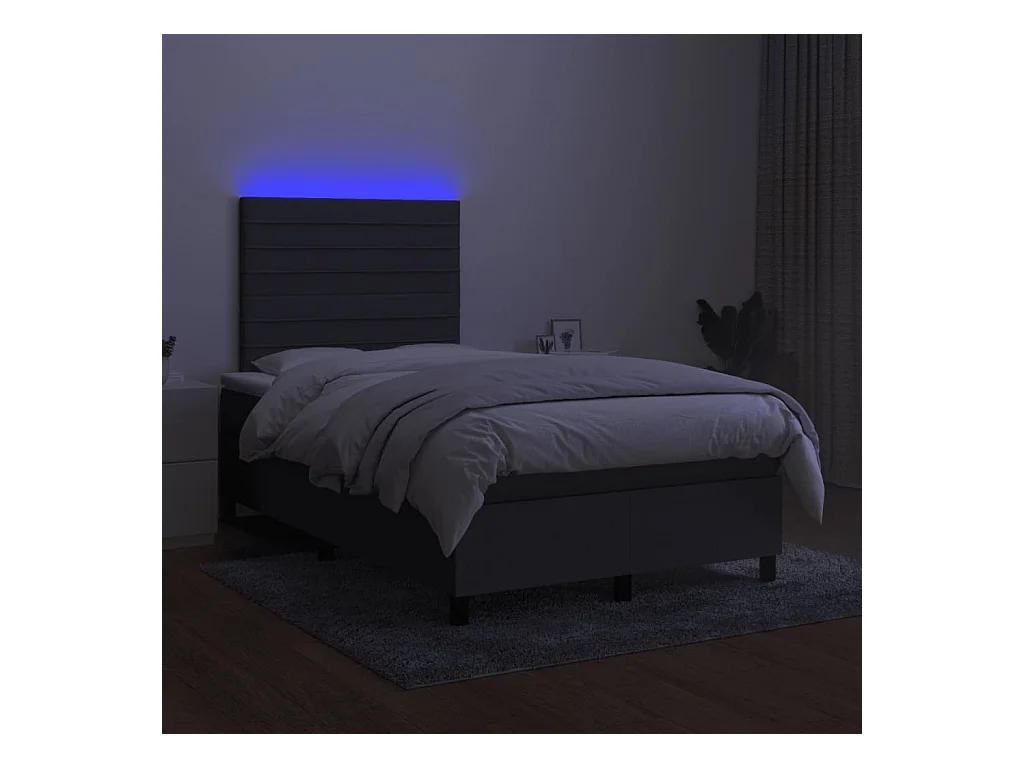 Sommier à lattes de lit matelas LED gris foncé 120x190 tissu