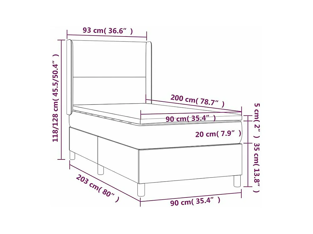 Sommier à lattes de lit matelas LED Gris foncé 90x200 Velours