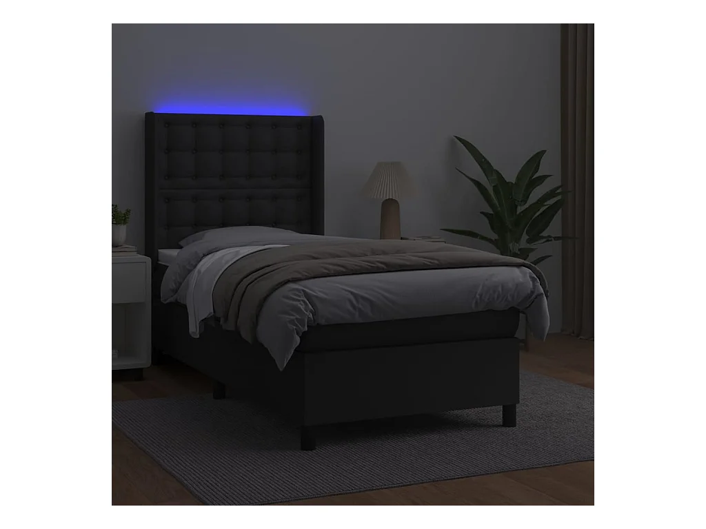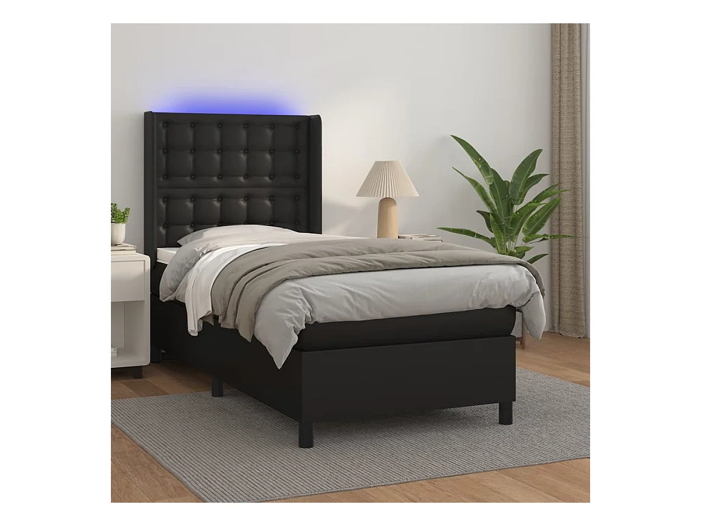 Sommier à lattes de lit matelas LED Noir 90x190 Similicuir