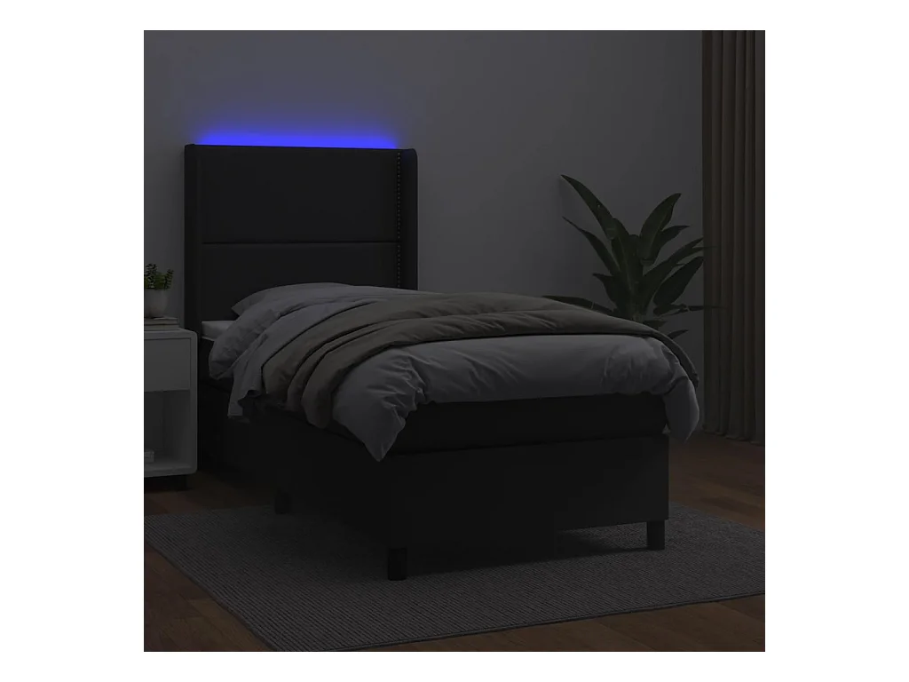 Sommier à lattes de lit matelas LED Noir 90x200 Similicuir