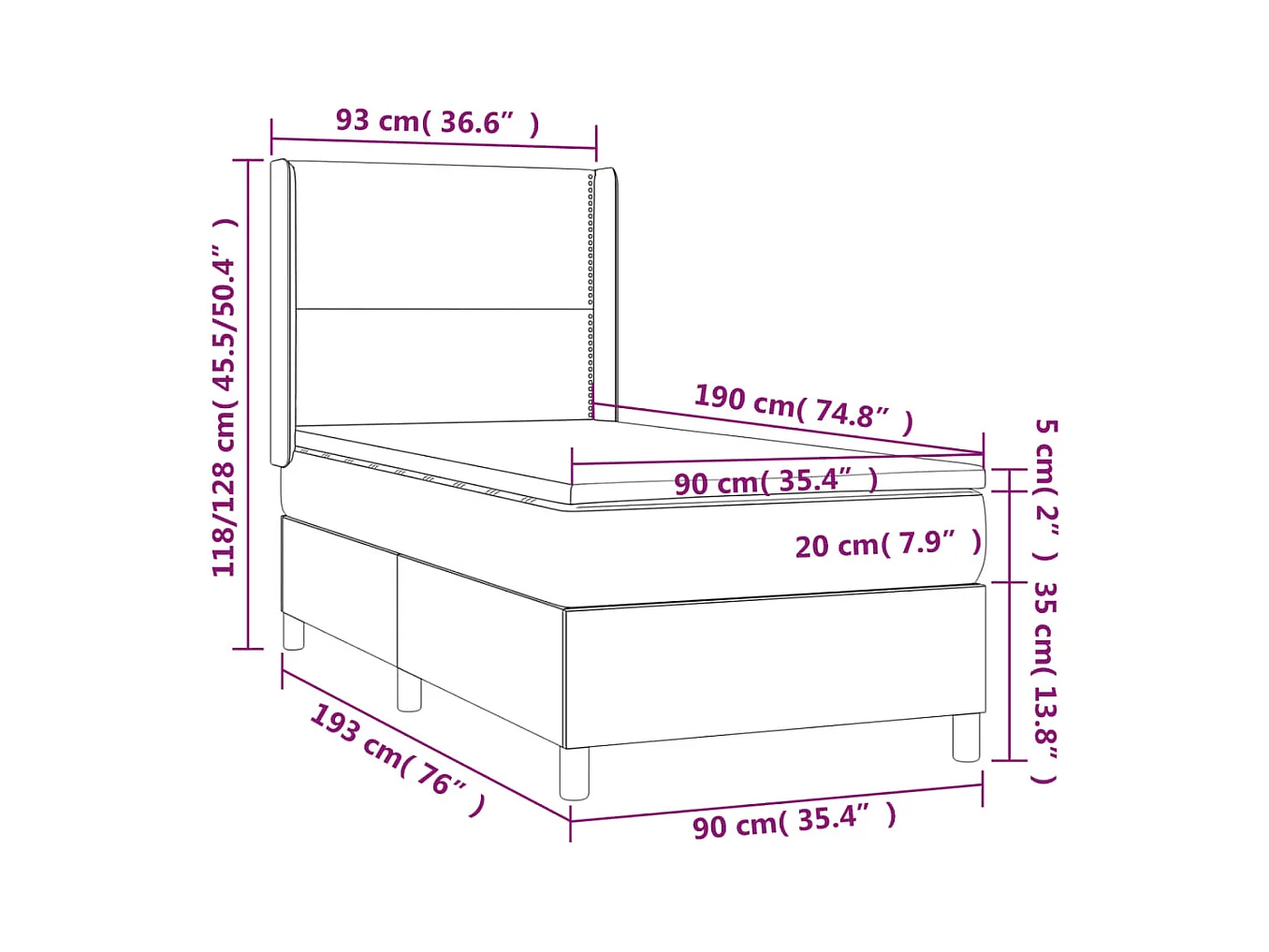 Sommier à lattes de lit matelas LED Taupe 90x190 Tissu