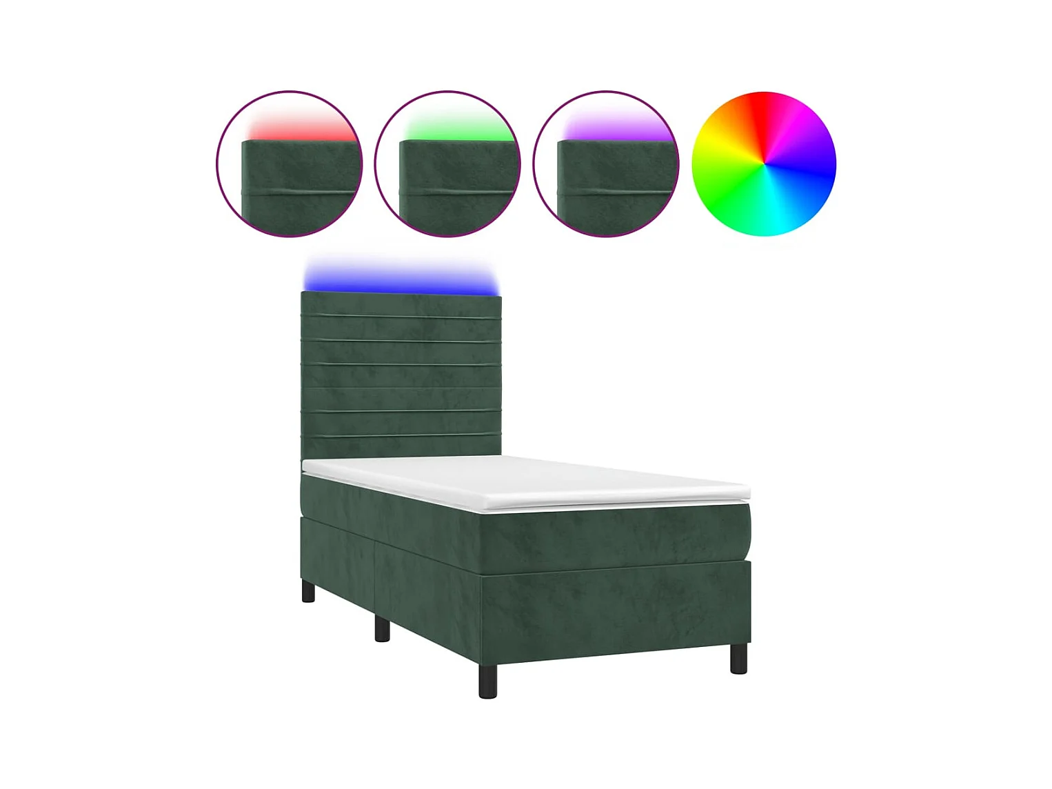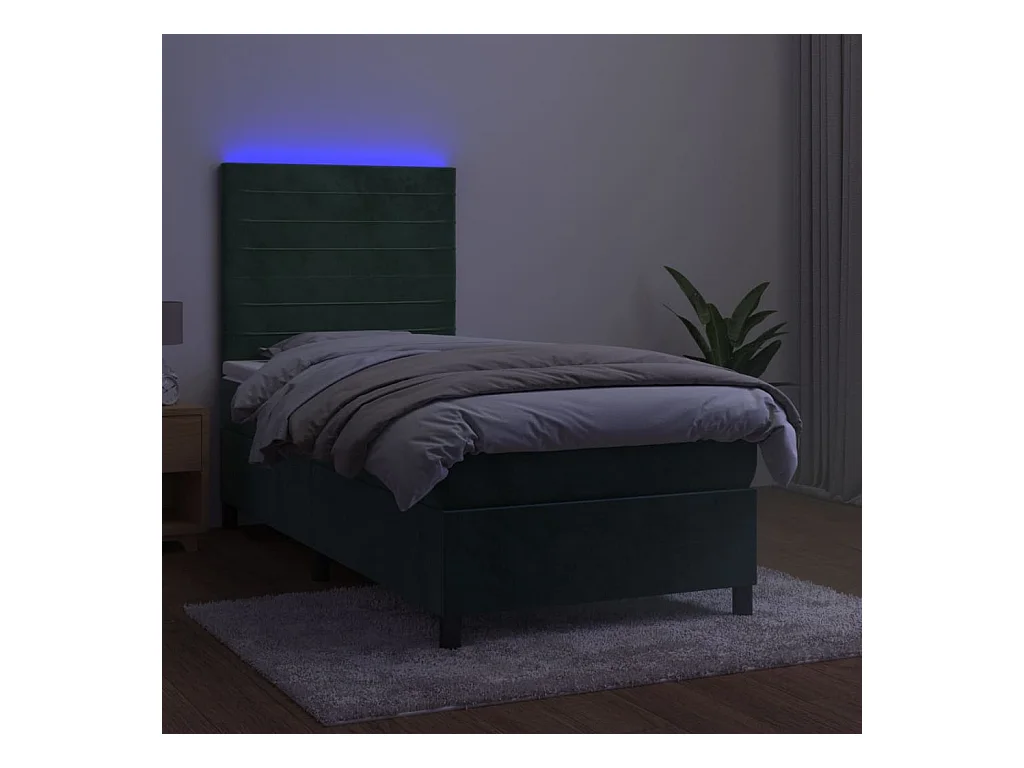 Sommier à lattes de lit matelas LED Vert foncé 90x190 Velours