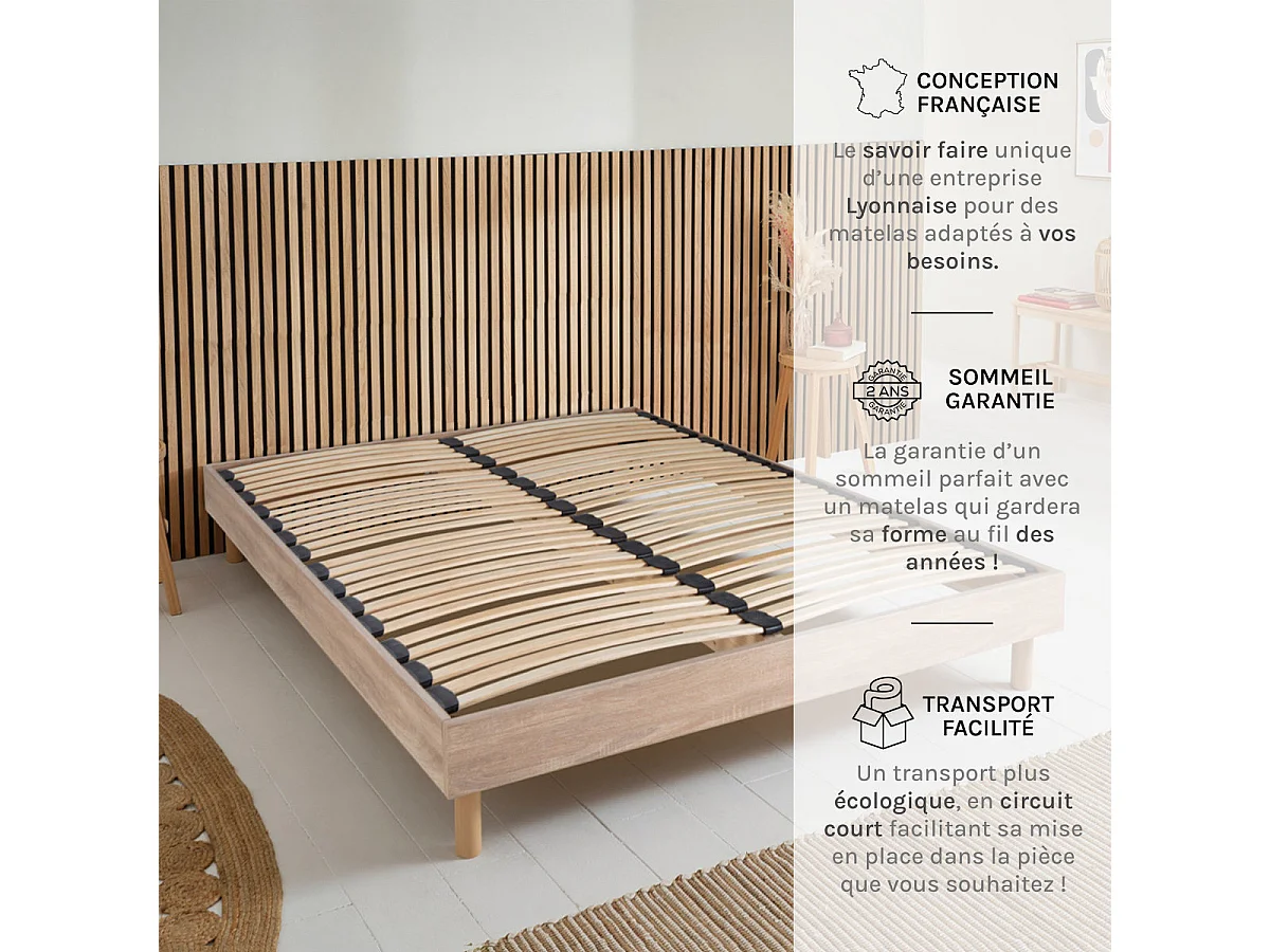 Sommier à lattes en KIT- Bois - Couleur naturelle 180x200 CM