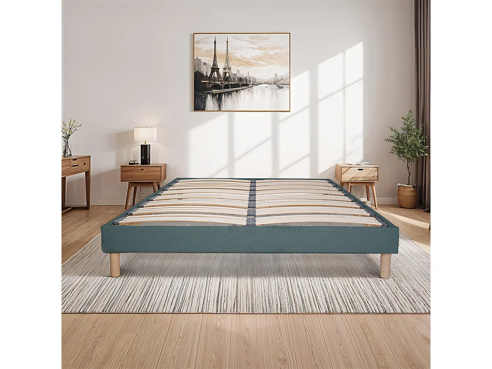 Sommier à lattes laine bouclée bleu BIANCA - 140 x 190 cm
