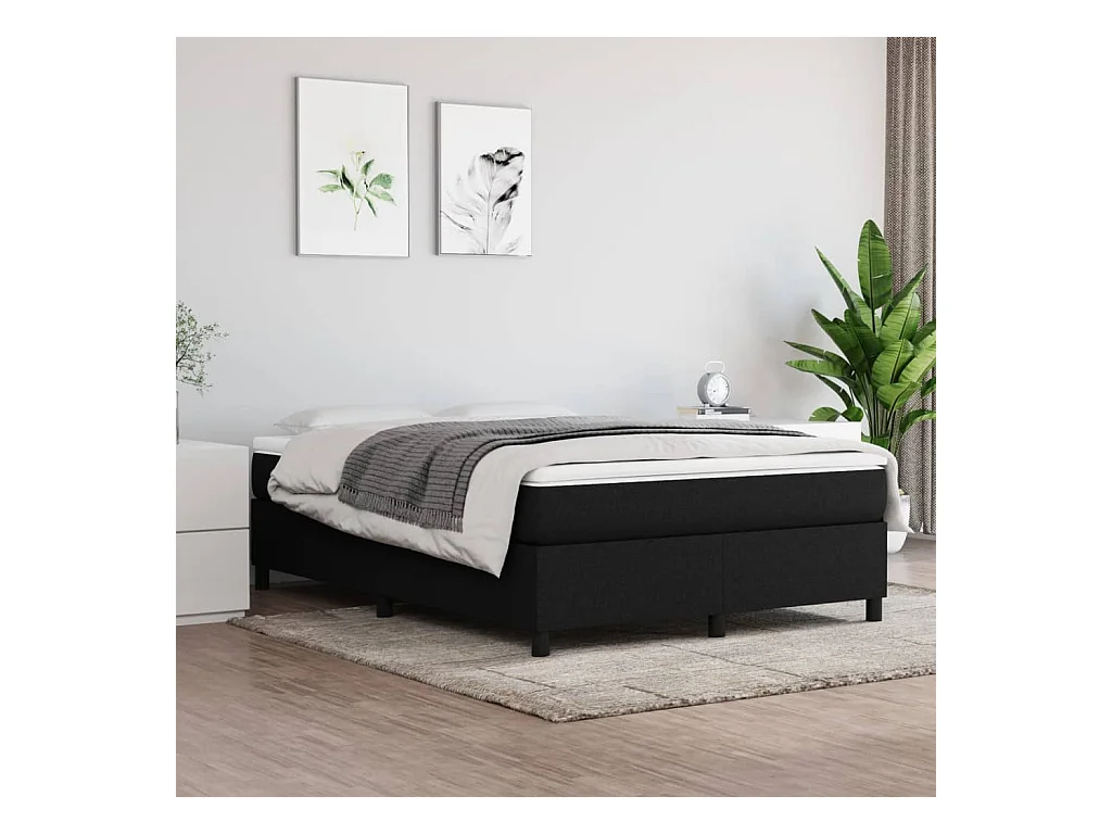 Sommier cadre à lattes de lit Noir 140x190 cm Tissu WEW25278