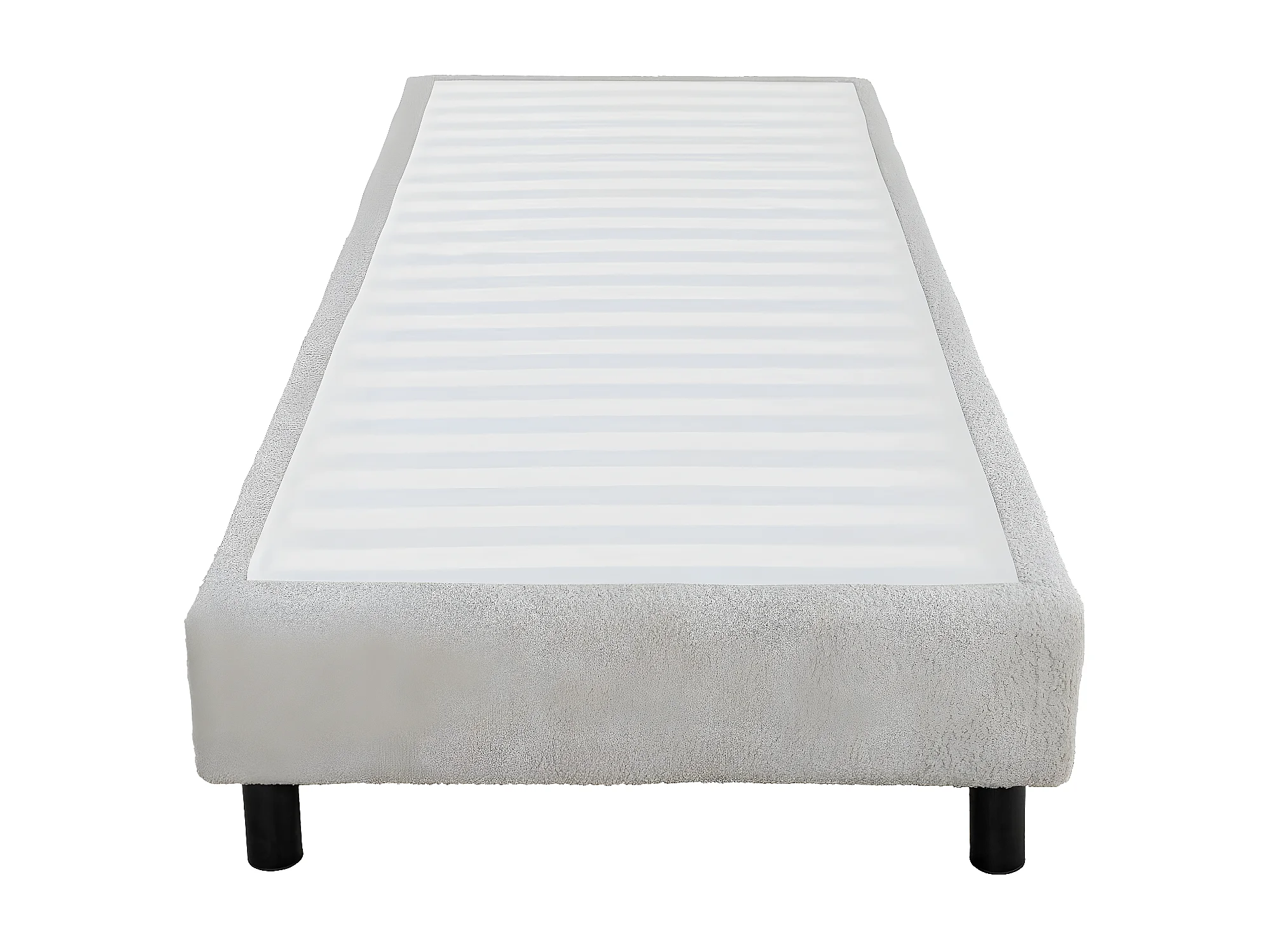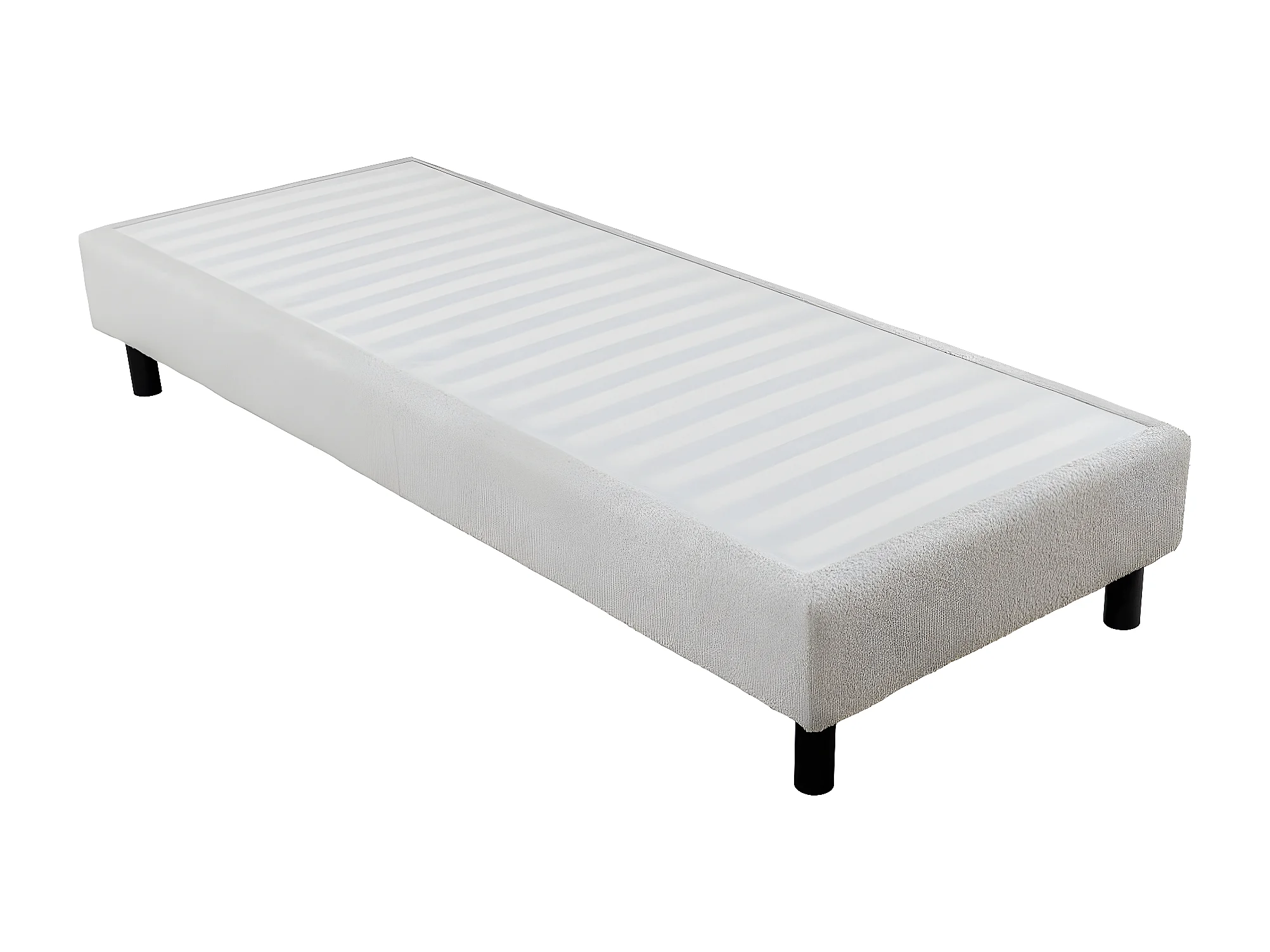 Sommier déco en Kit + pieds 90x190 - Newkit 20 lattes bois - Tissu crème - H. 18 cm