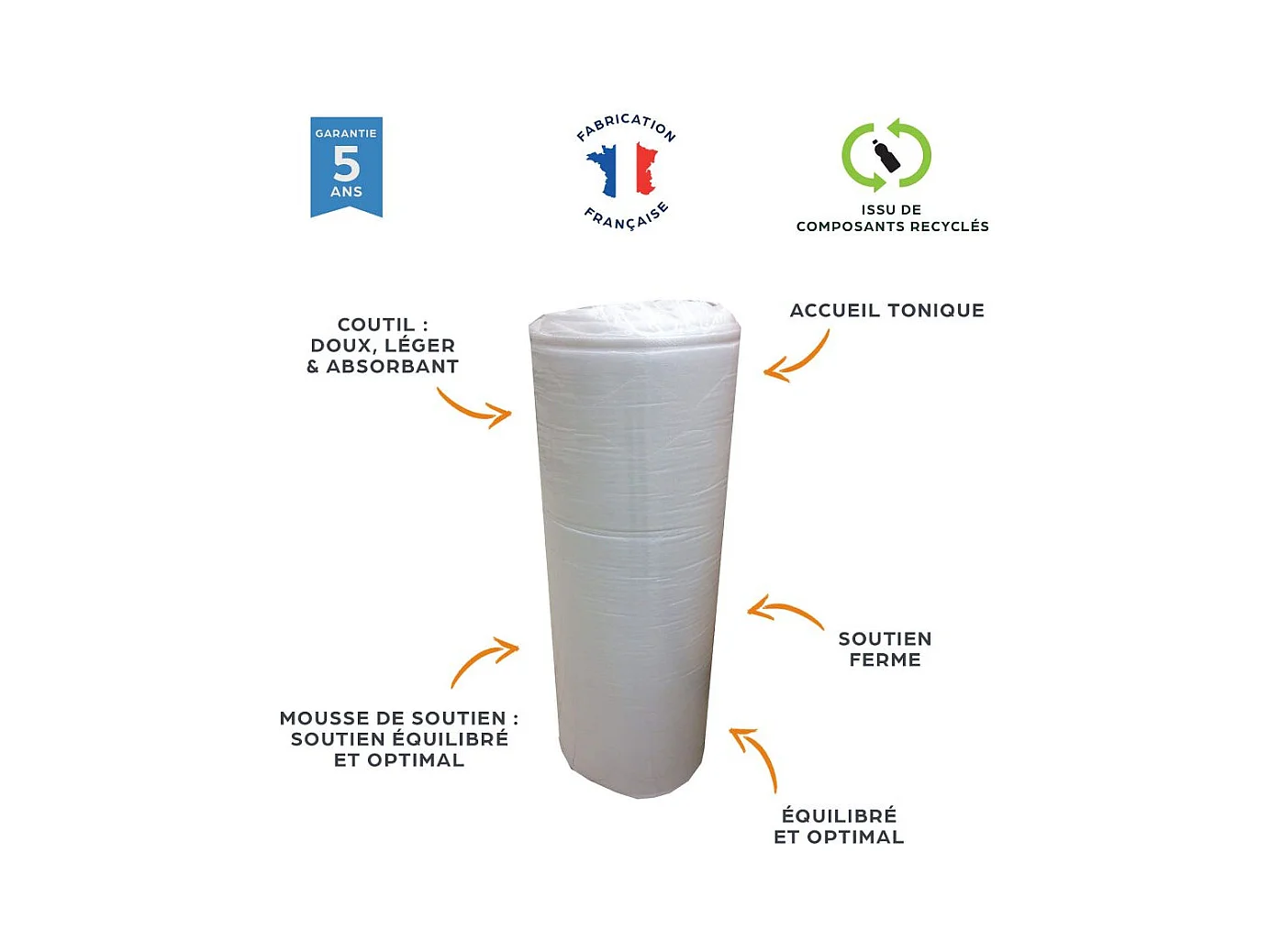 Matelas et sommier 160x200 Madere - Newkit - Soutien ferme - Sommier démonté - Lin