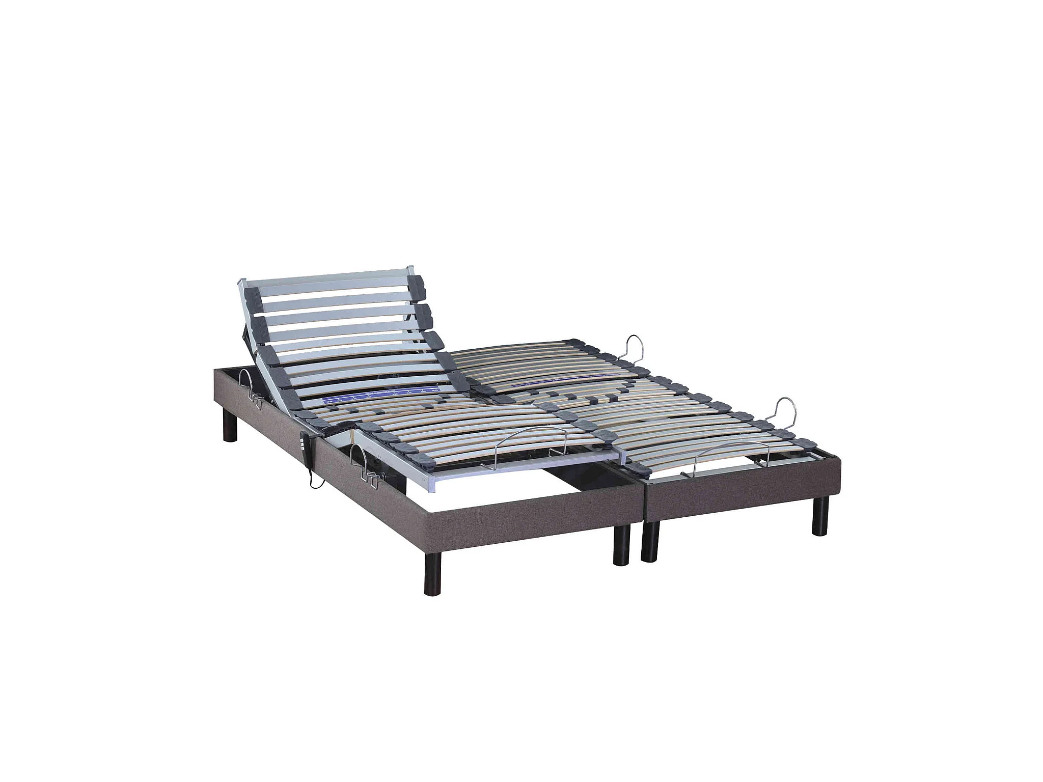 Sommier électrique de relaxation tout lattes tissu taupe 2x80x200