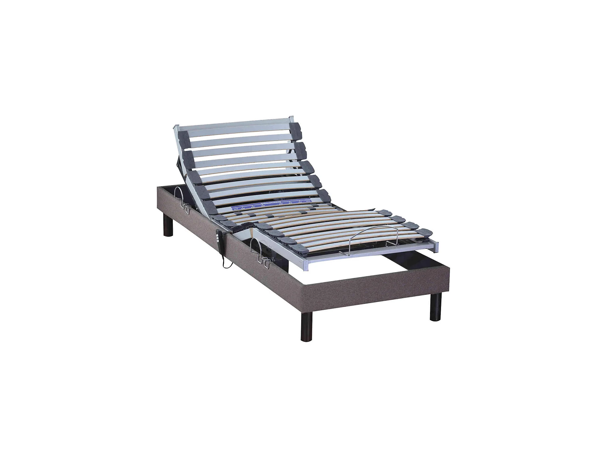 Sommier électrique de relaxation tout lattes tissu taupe 80x200