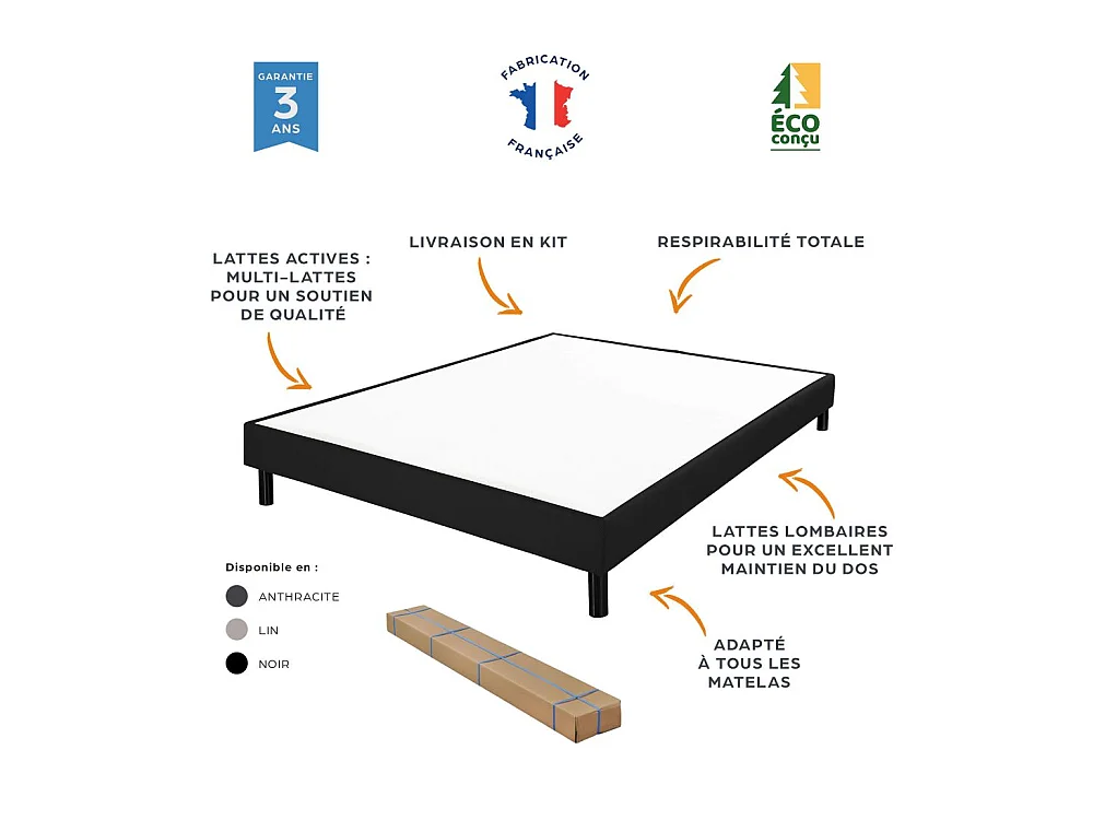 Sommier déco en Kit + pieds 140x190 - Newkit 40 lattes bois - Anthracite - H. 18 cm