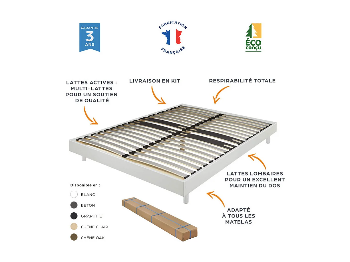Sommier déco en Kit + pieds 160x200 - Decokit 36 lattes bois - Chêne clair - H. 13 cm