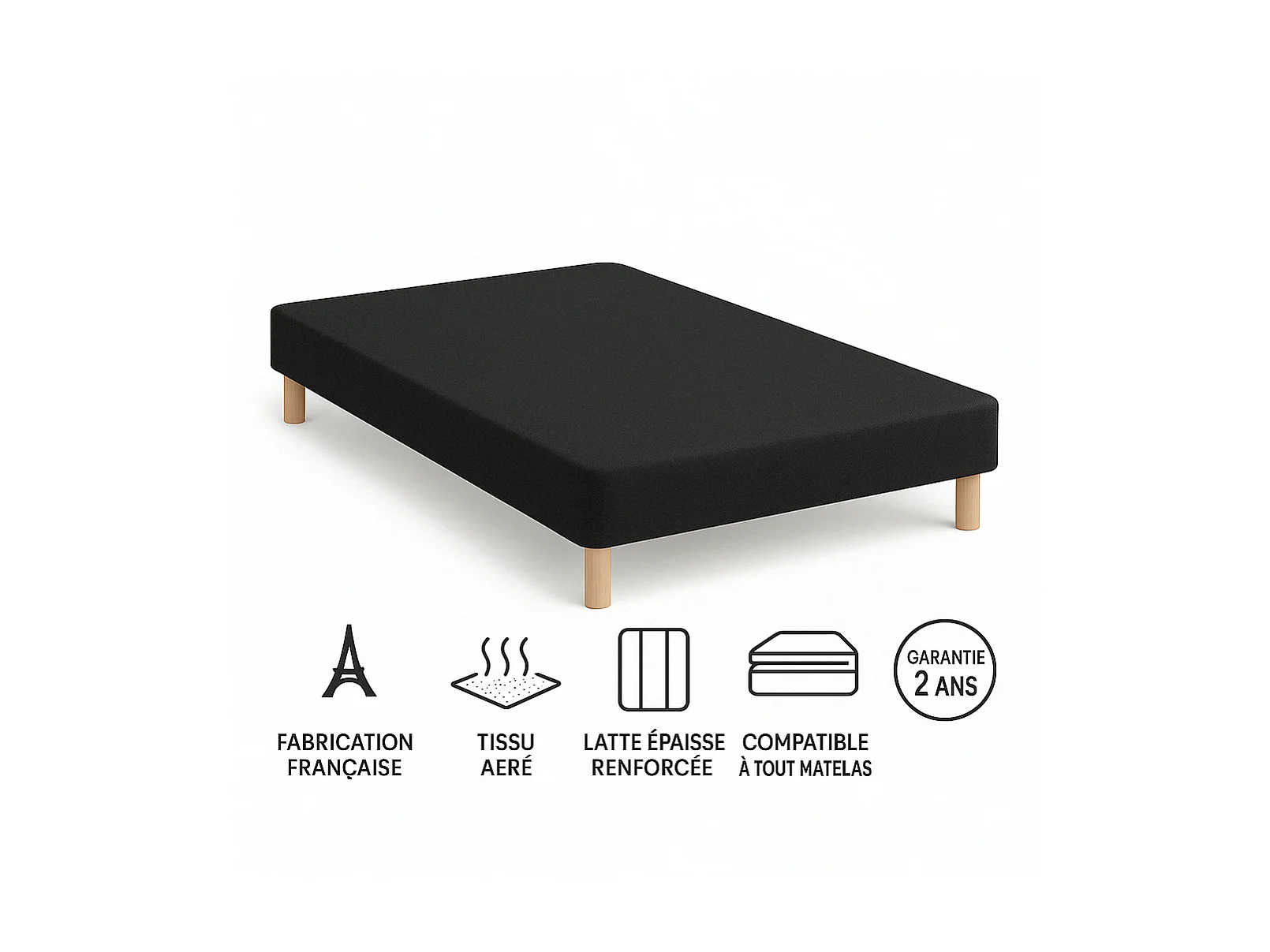 Sommier Tapissier Noir 130x190 Fabrication Française Artisanale