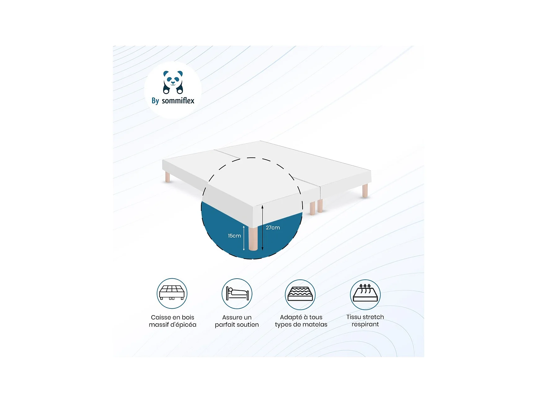 SOMMIER TAPISSIER BLANC 70x200x2 (140x200) | FABRICATION FRANÇAISE ARTISANALE | PIEDS OFFERTS | HAUTEUR avec PIEDS 27 cm