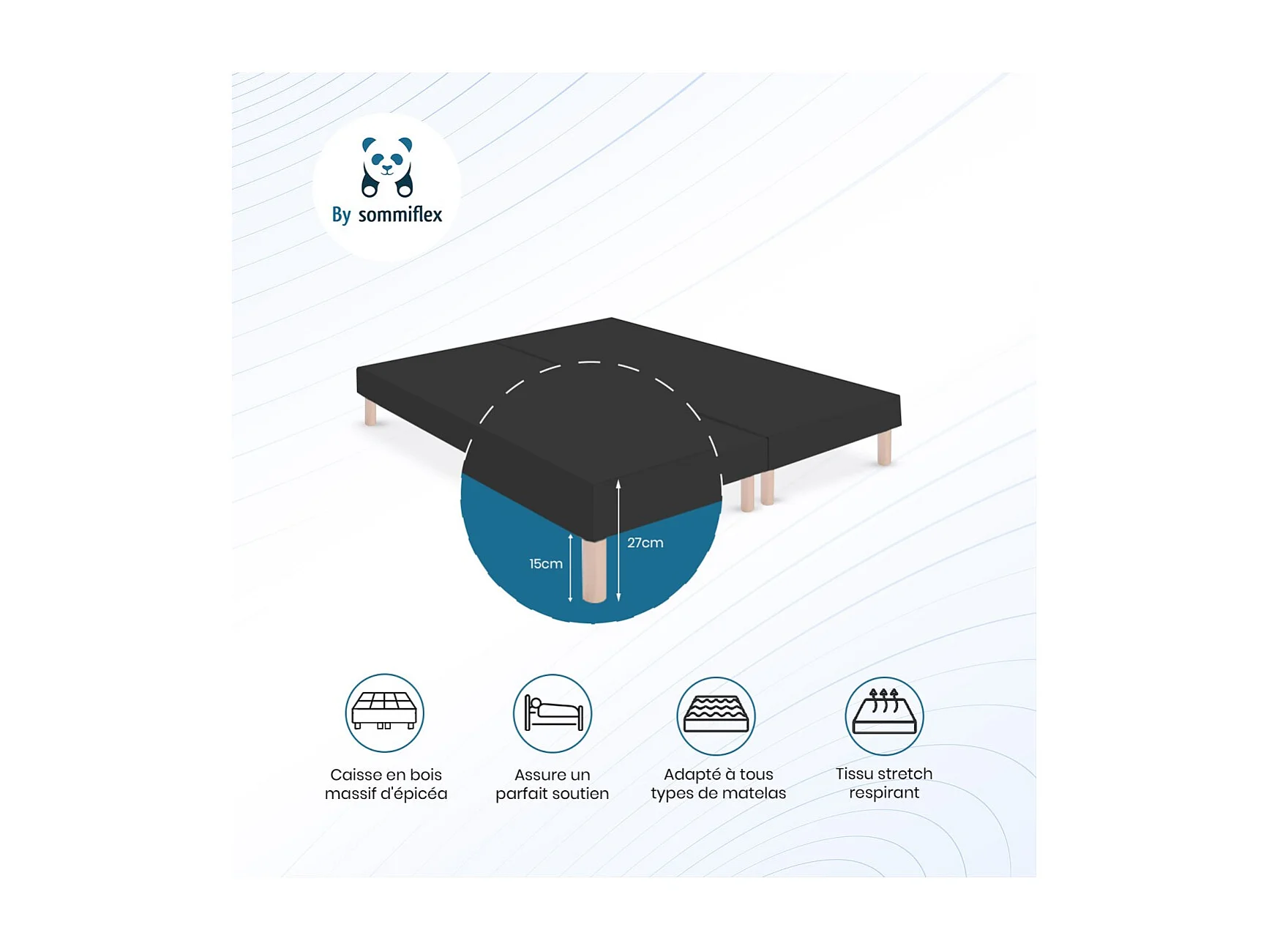 SOMMIER TAPISSIER NOIR 100x200x2 (200x200) | FABRICATION FRANÇAISE ARTISANALE | PIEDS OFFERTS | HAUTEUR avec PIEDS 27 cm