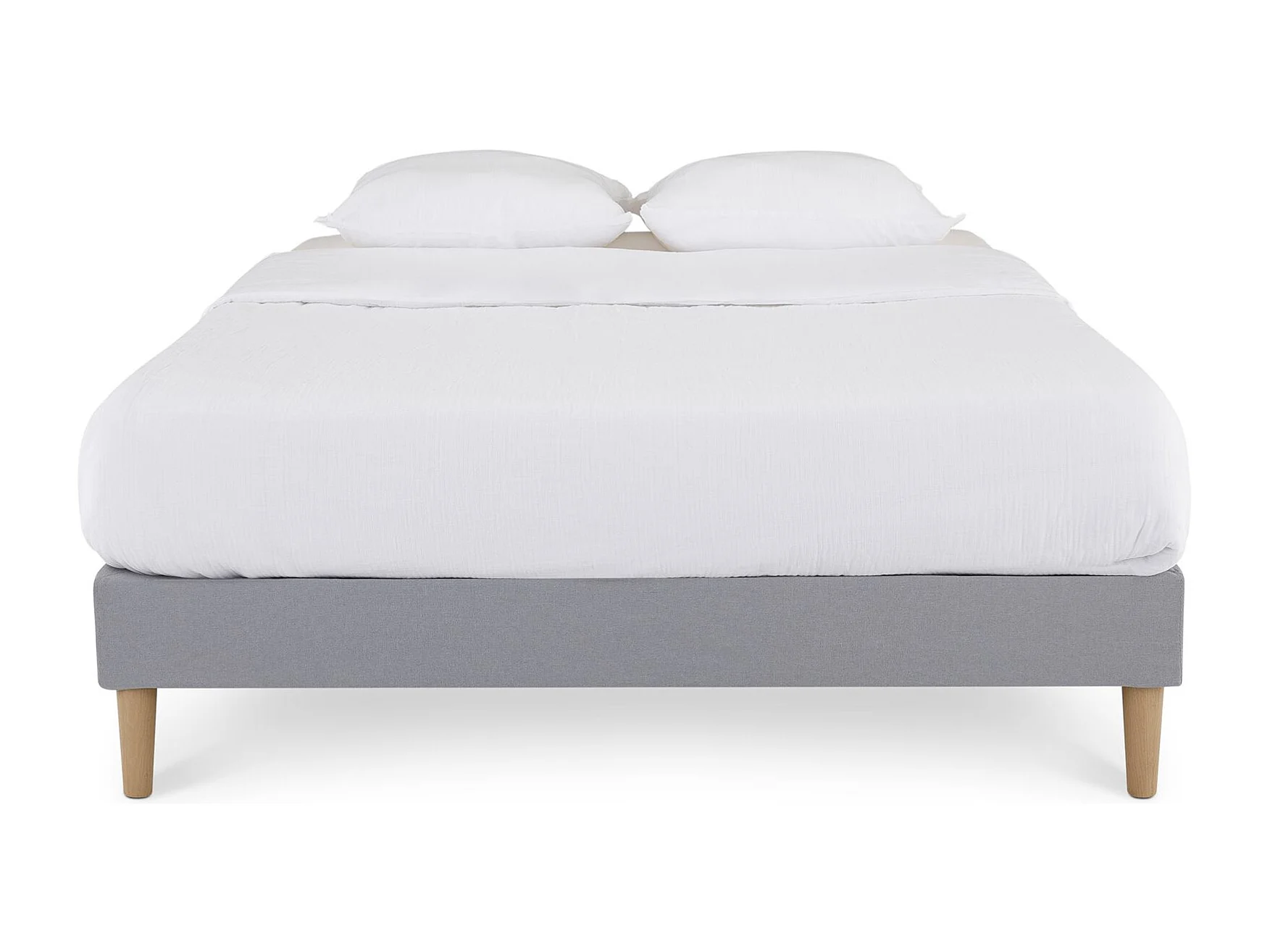 Sommier tapissier BREST 160 x 200 cm structure en bois et revêtement en tissu gris, cadre de lit avec pieds