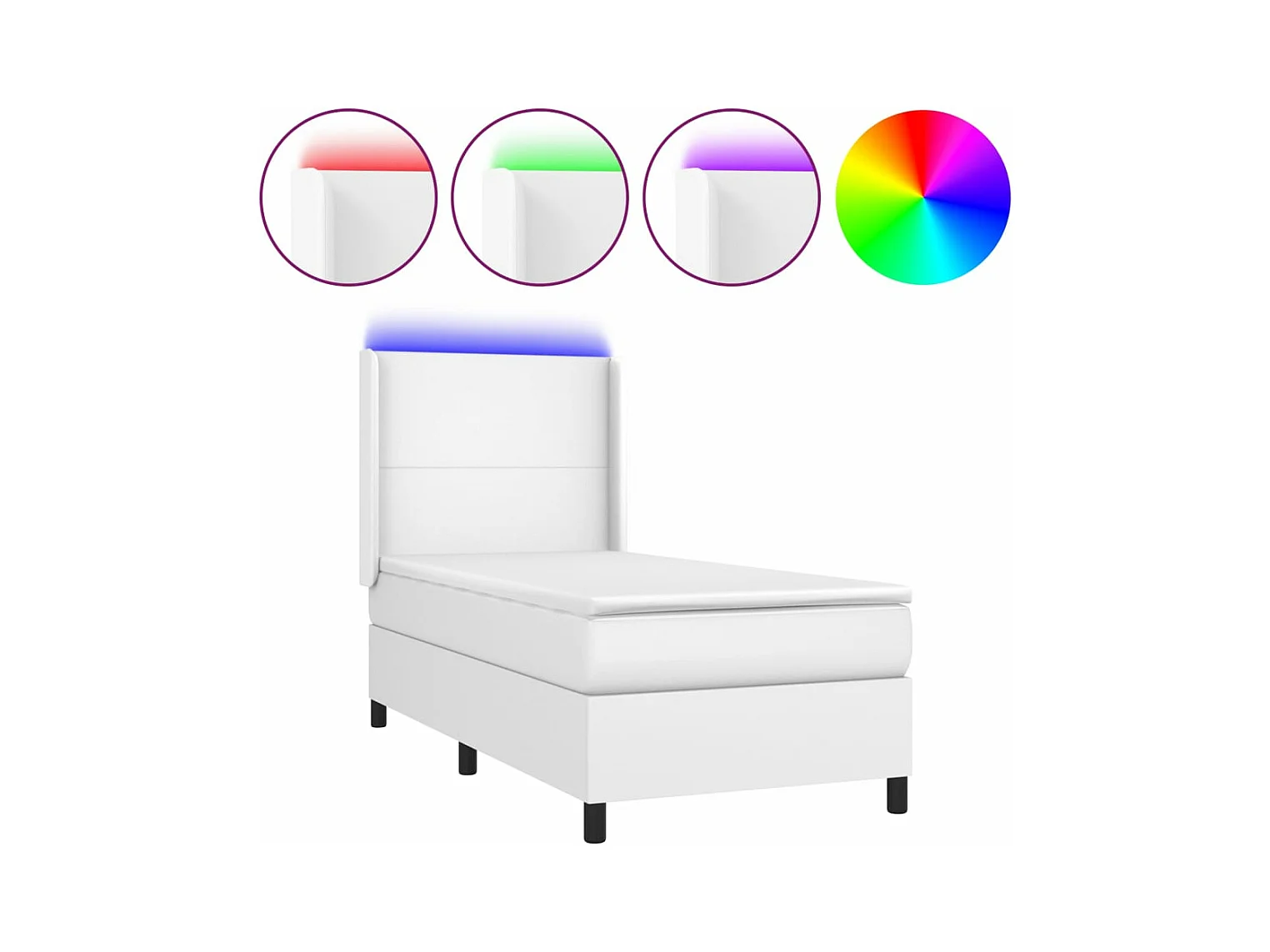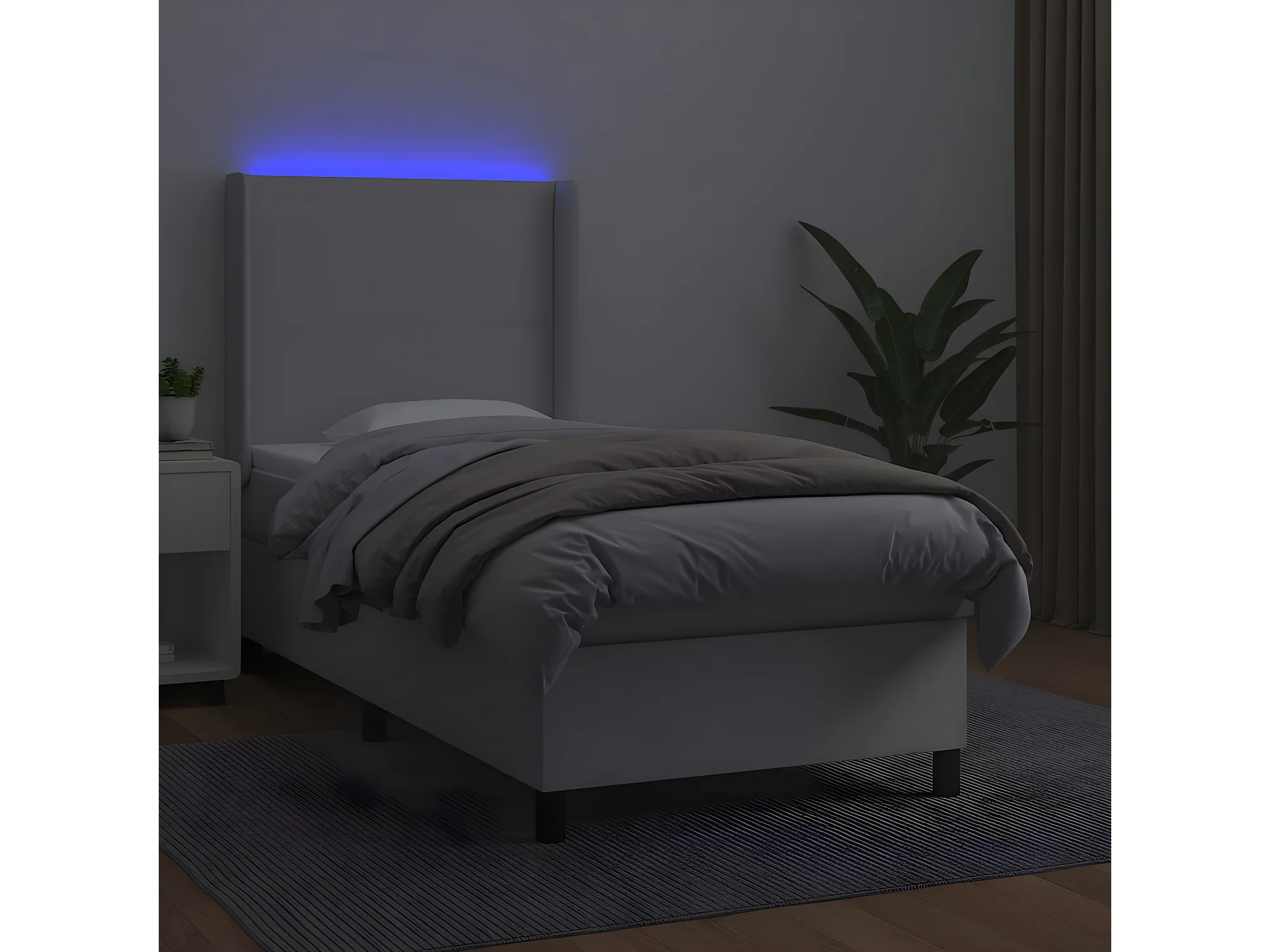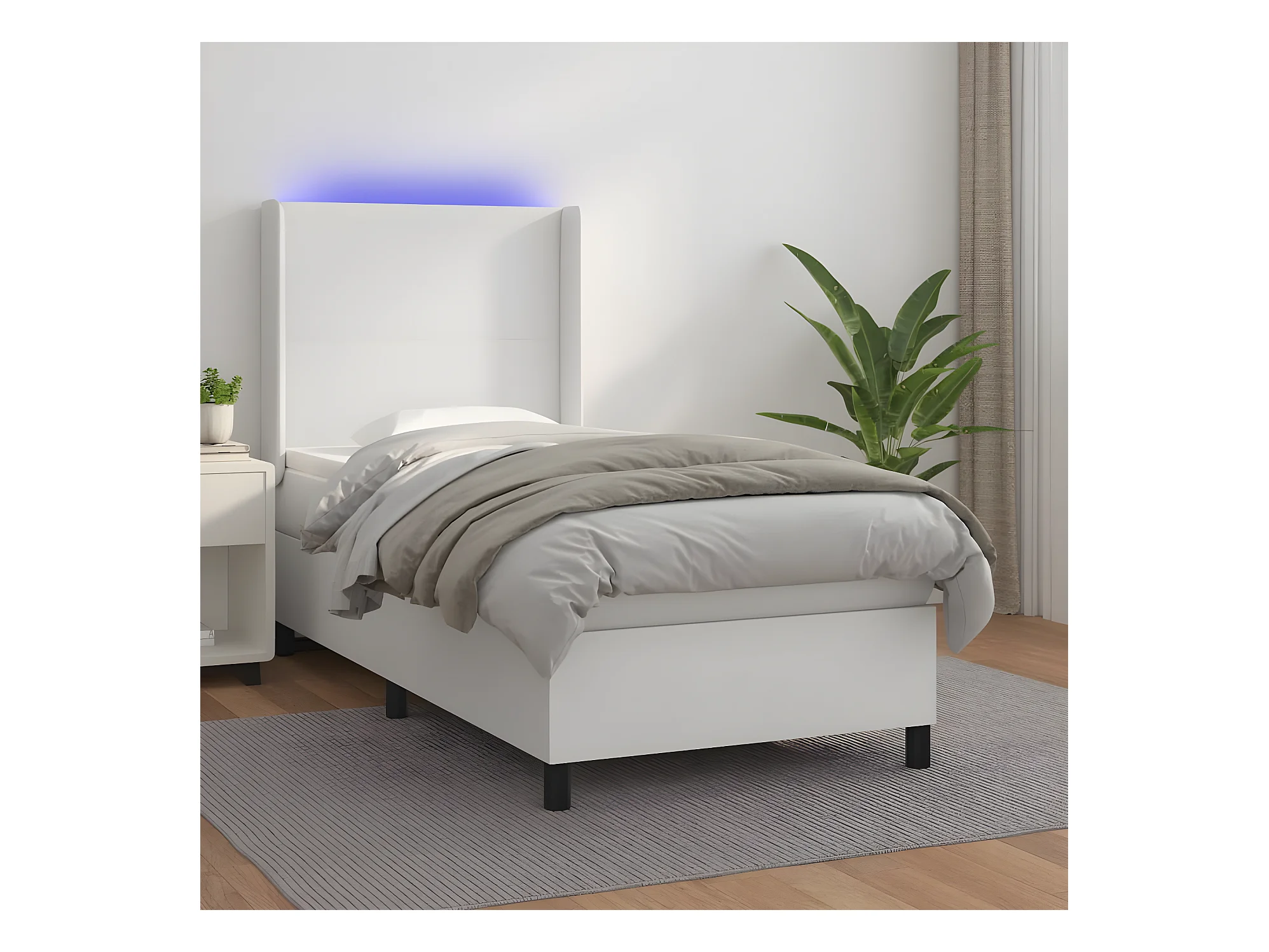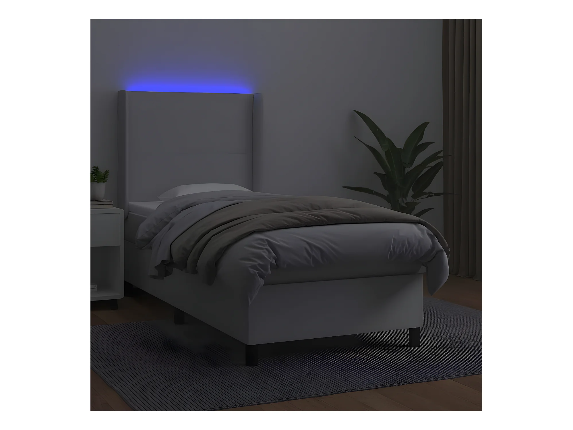 Sommier tapissier et matelas et LED Blanc 100x200 cm Similicuir