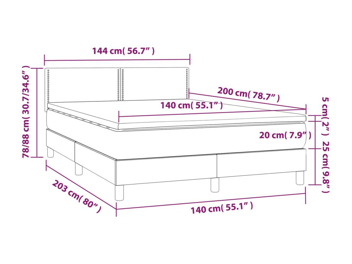 Sommier tapissier matelas et LED Bleu foncé 140x200 cm Velours