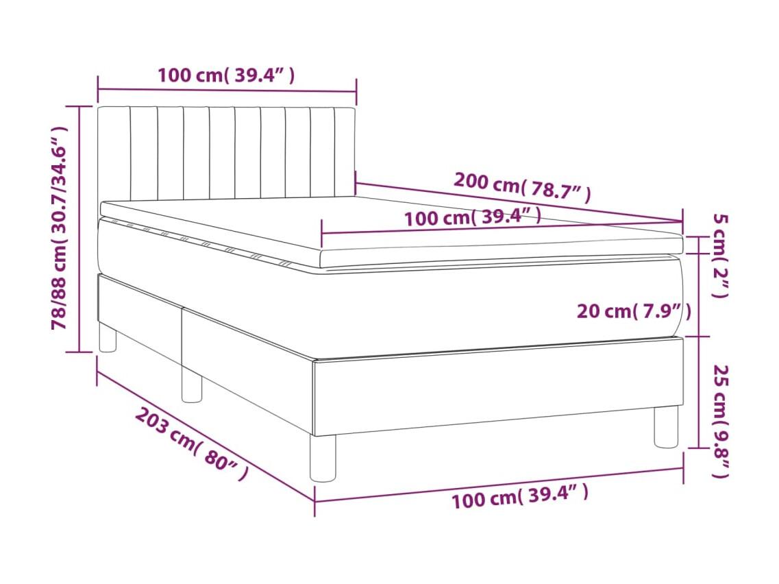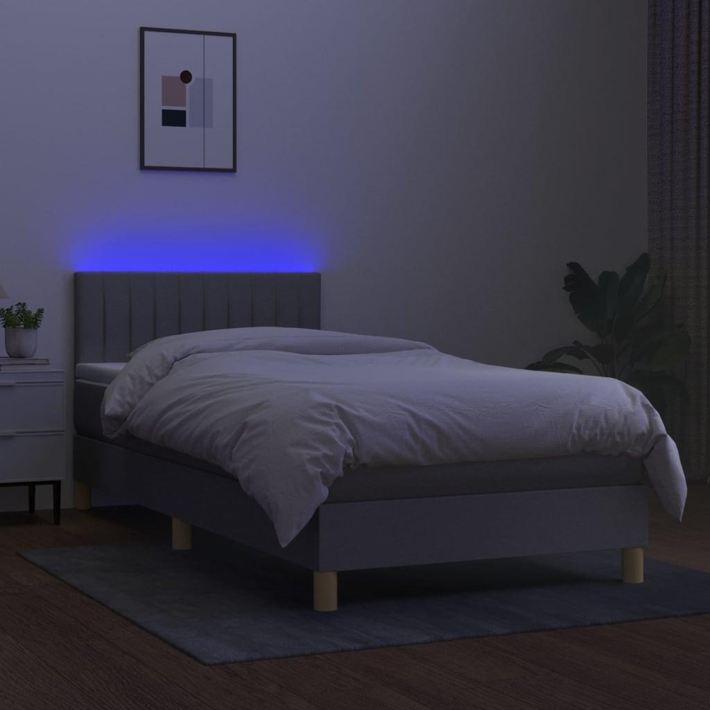 Sommier tapissier matelas et LED Gris clair 100x200 cm Tissu