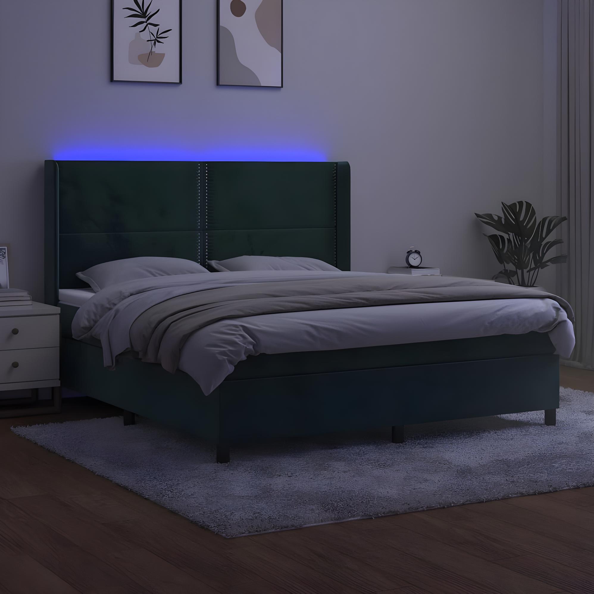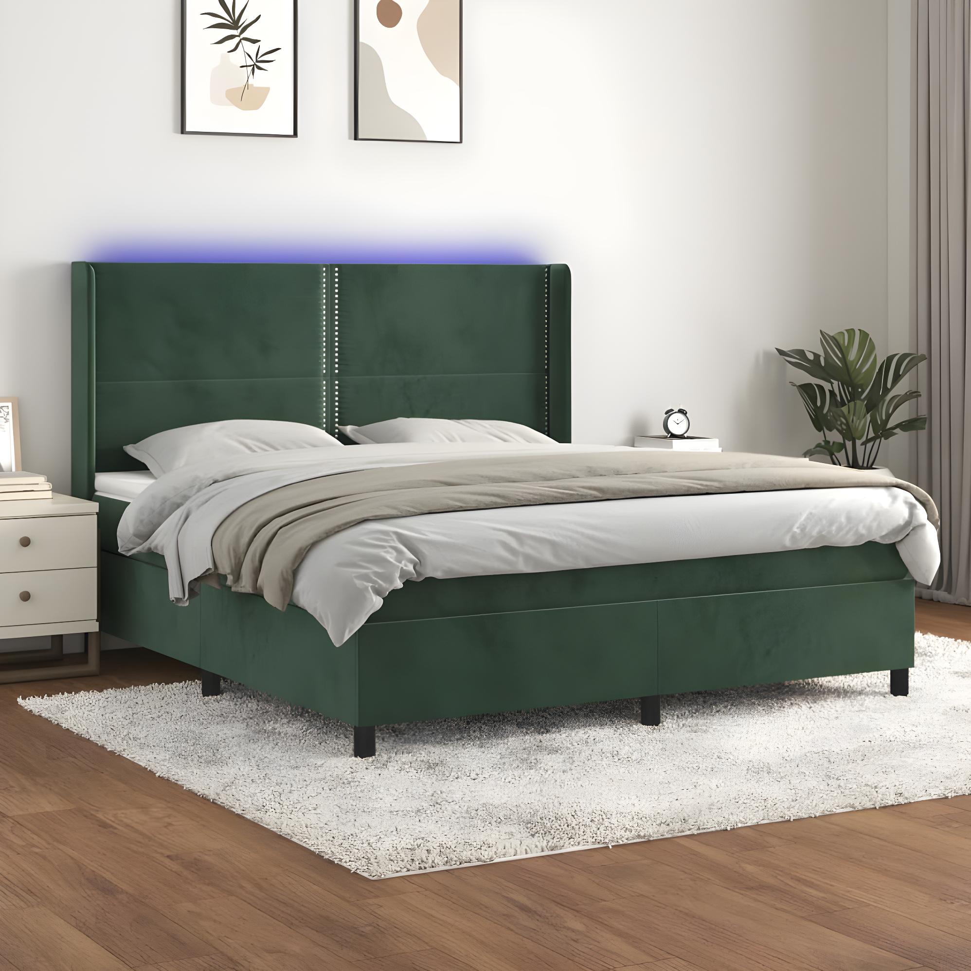 Sommier tapissier matelas et LED Vert foncé 160x200 cm Velours