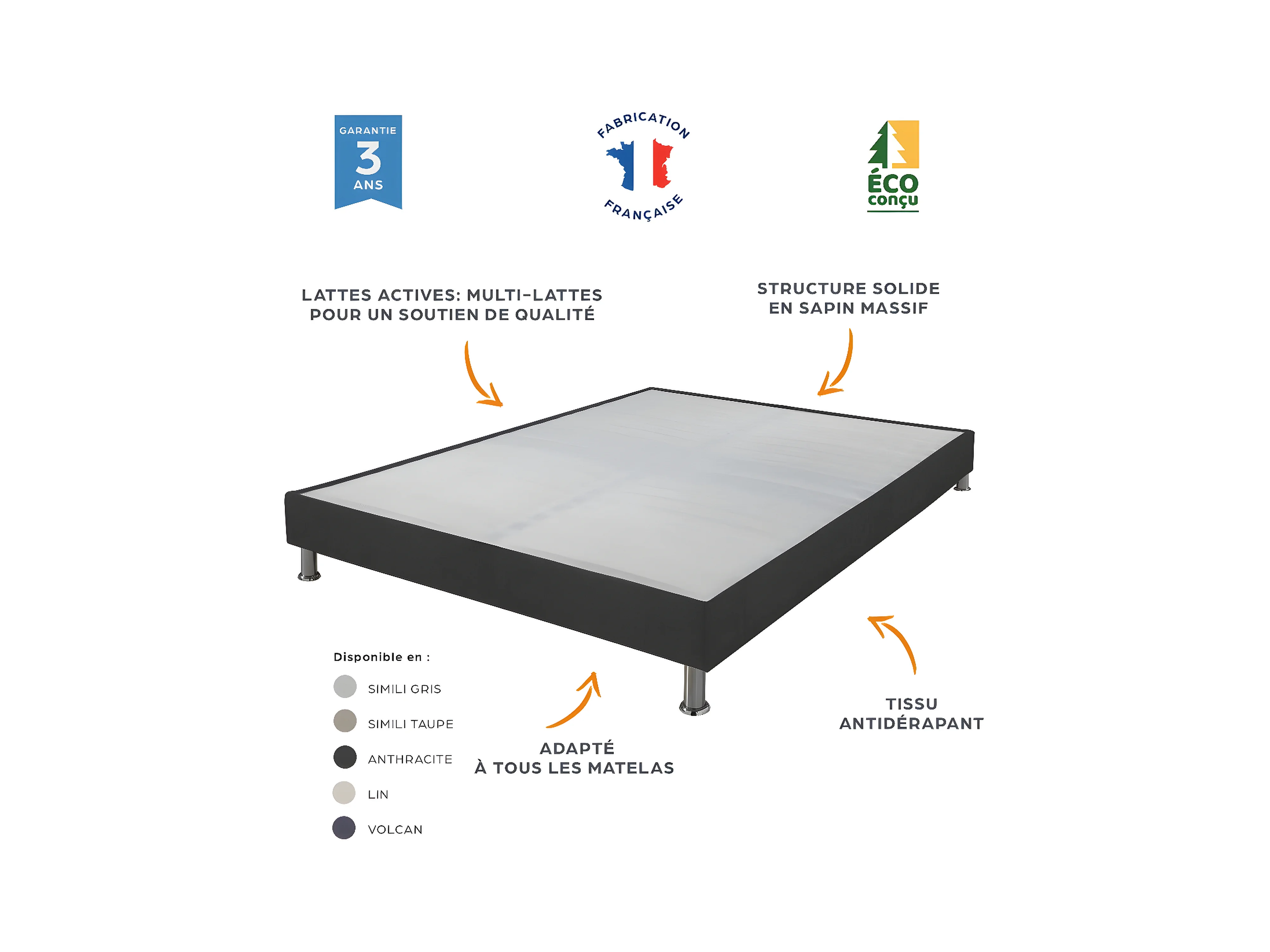 Sommier tapissier Omega Anthracite 3 70x190 Lattes bois - H.15 cm - Made in France