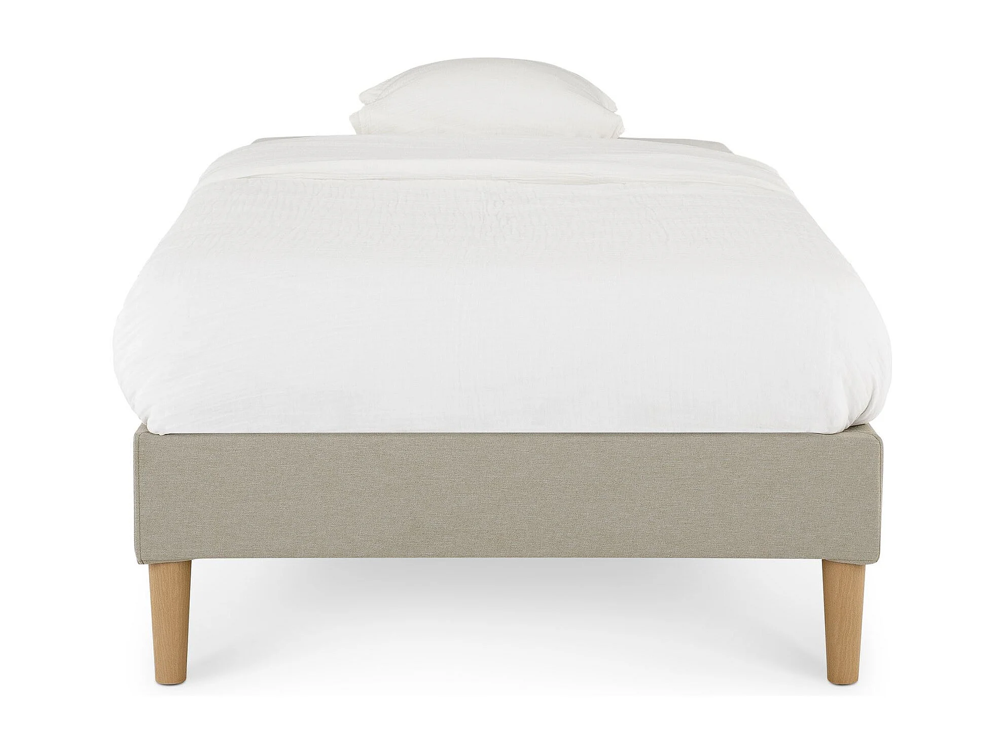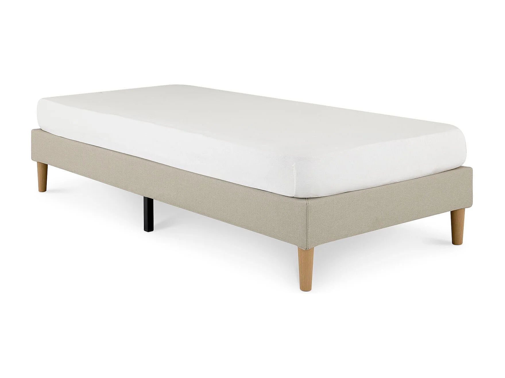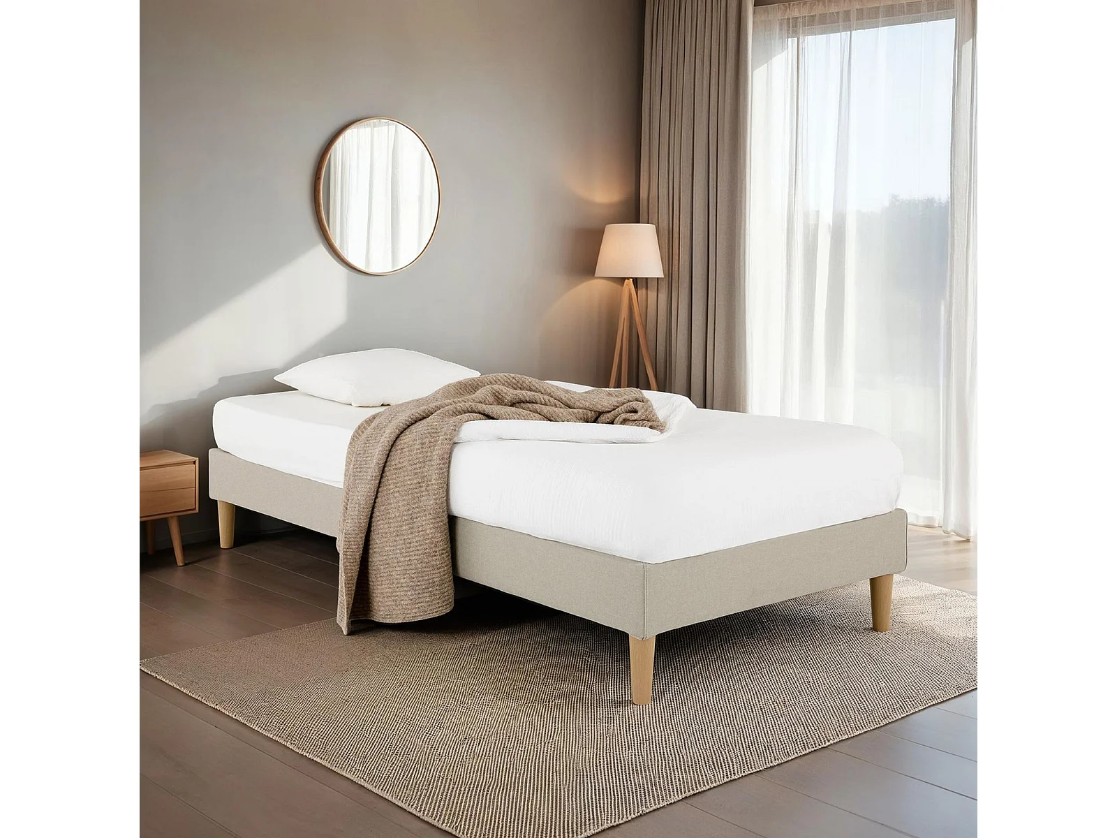 Sommier tapissier PAIMPOL 90 x 190 cm structure en bois et revêtement en tissu beige, cadre de lit avec pieds