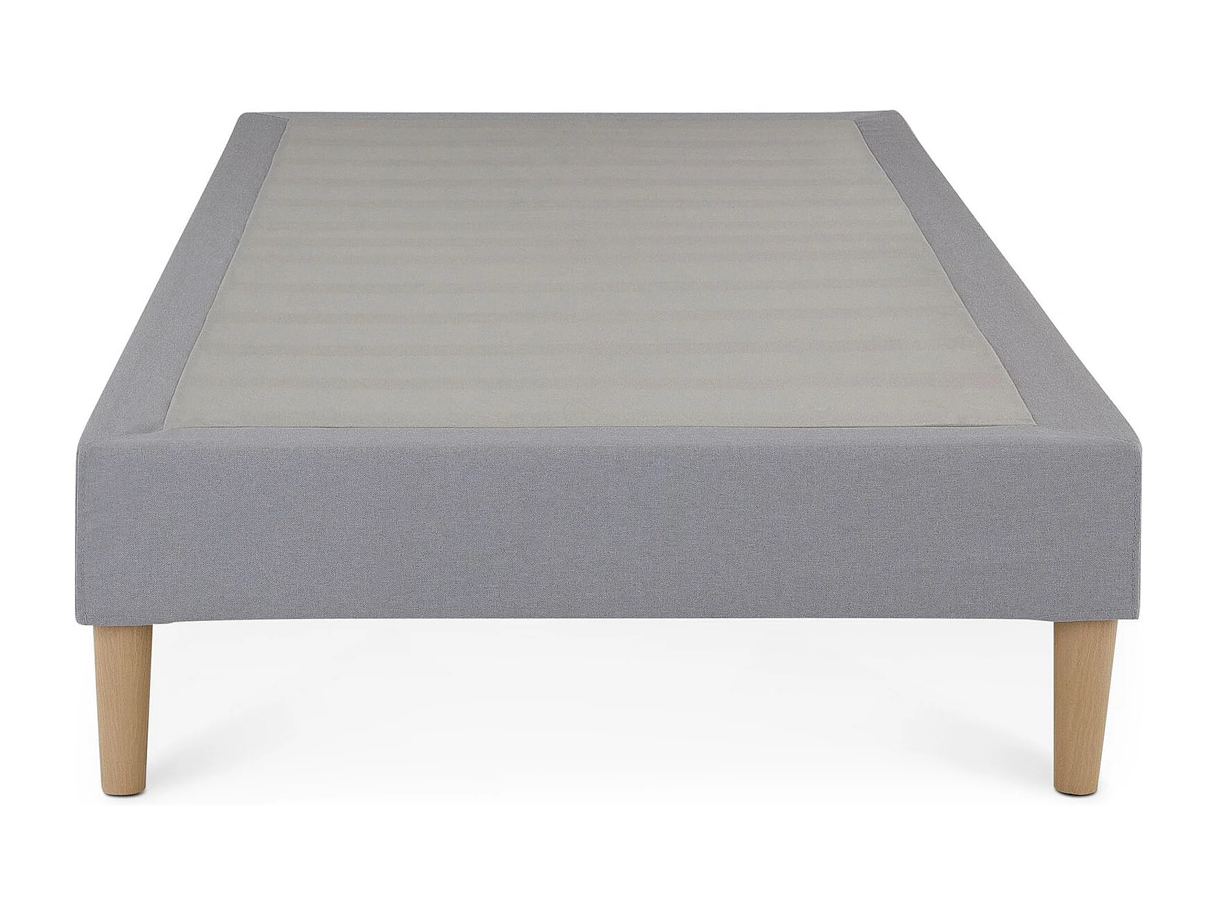 Sommier tapissier PAIMPOL 90 x 190 cm structure en bois et revêtement en tissu gris, cadre de lit avec pieds