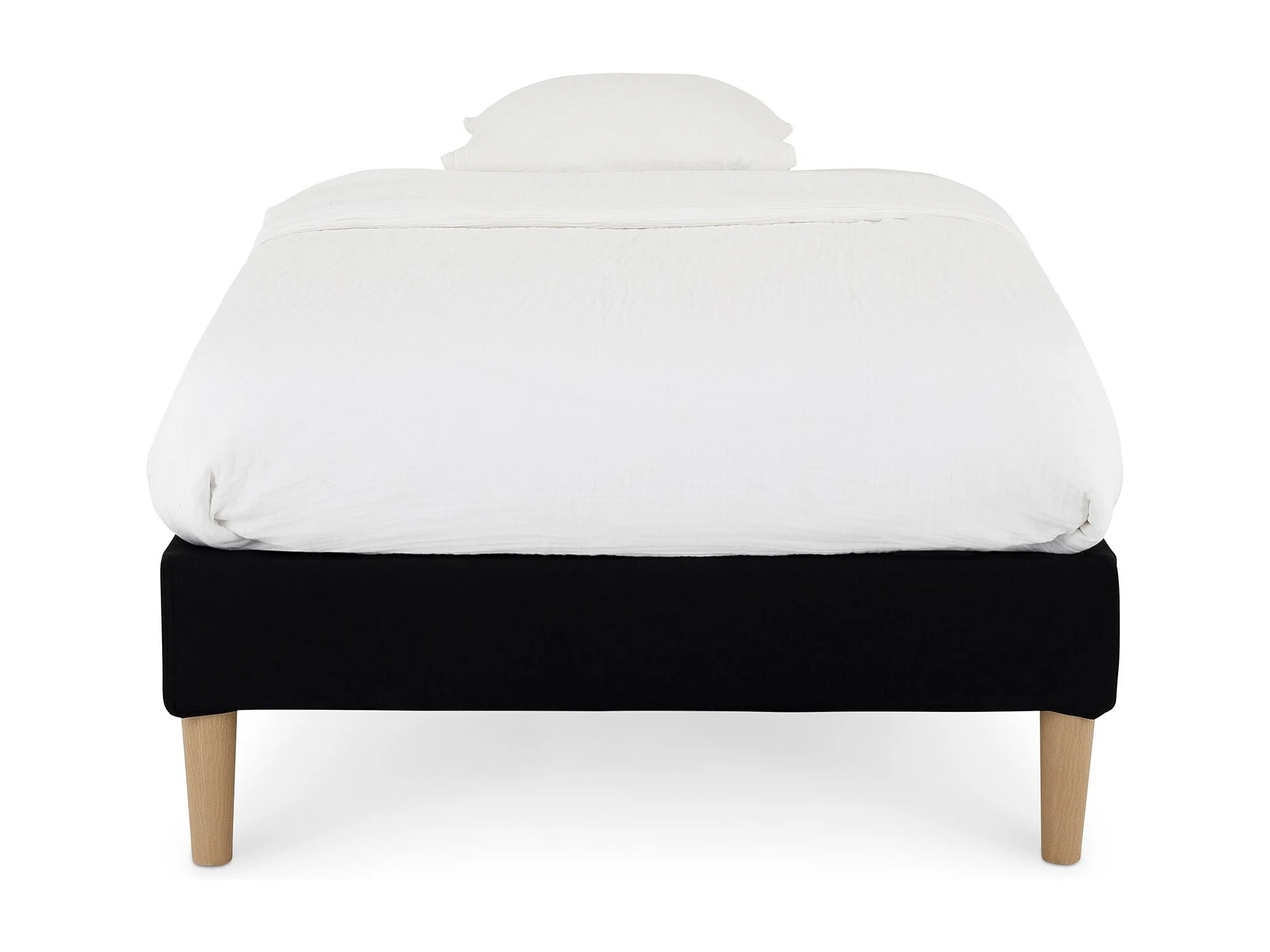 Sommier tapissier PAIMPOL 90 x 190 cm structure en bois et revêtement en tissu noir, cadre de lit avec pieds