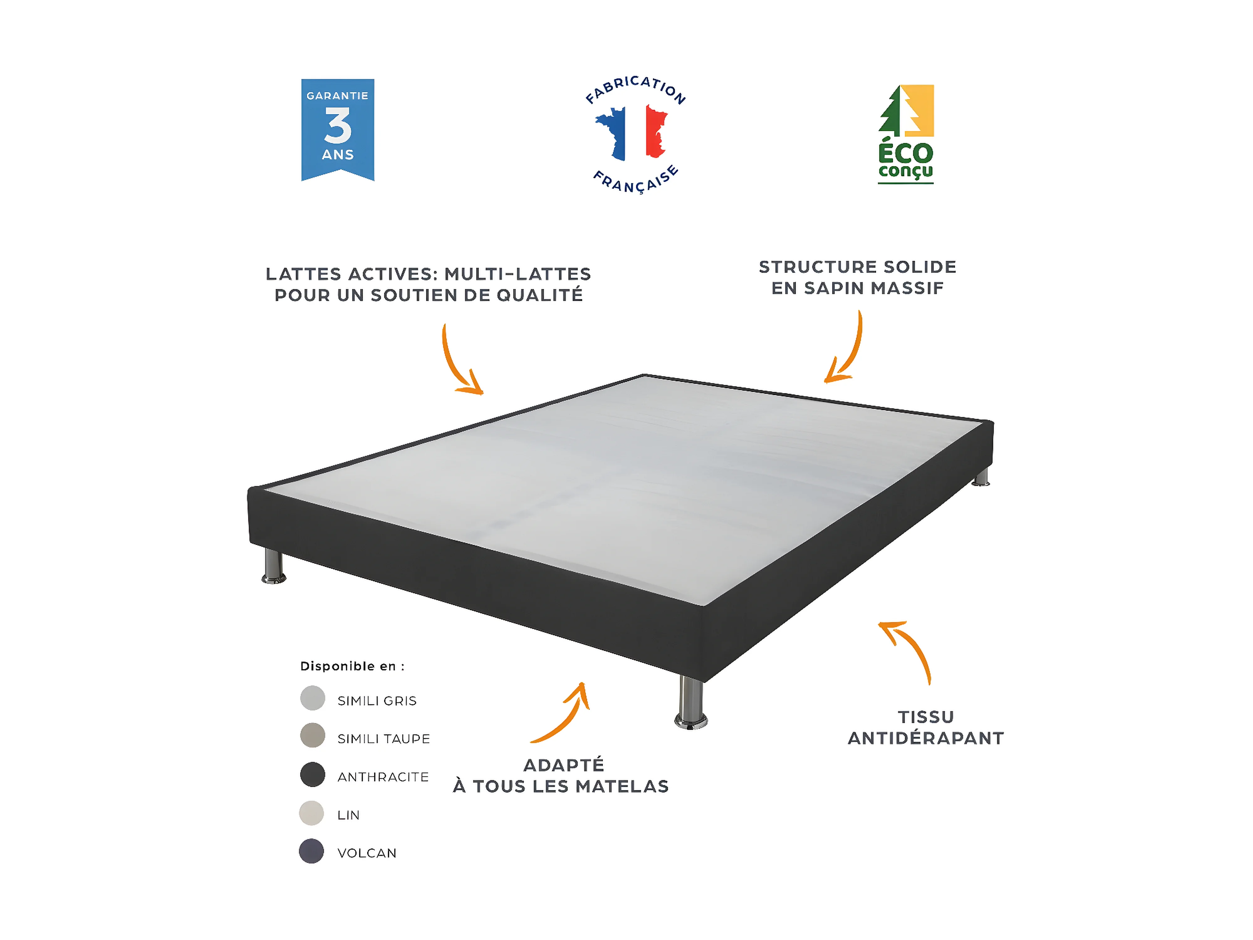 Sommier tapissier+pieds Omega Sahara 2x80x200 Lattes bois - H.15 cm - Made in France
