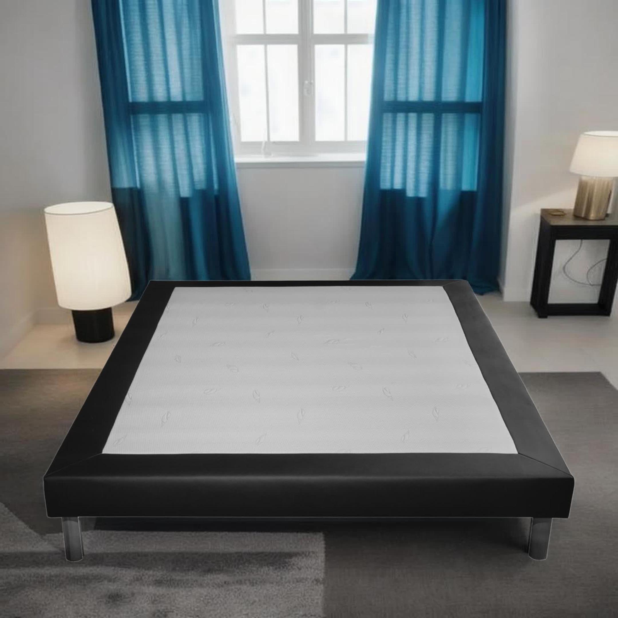Sommier tapissier simili noir - 140x190cm